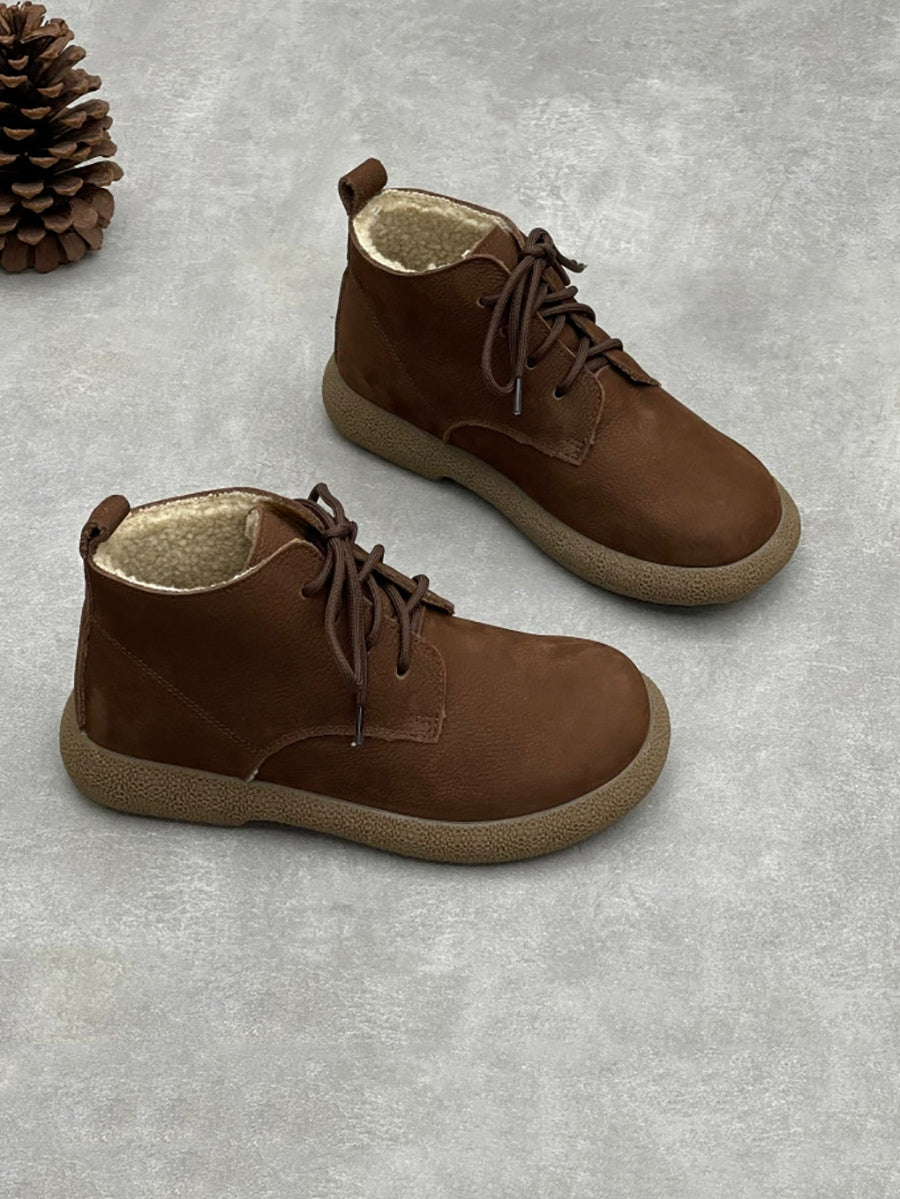Kvinnors vinterkängor i äkta läder med fleecefoder