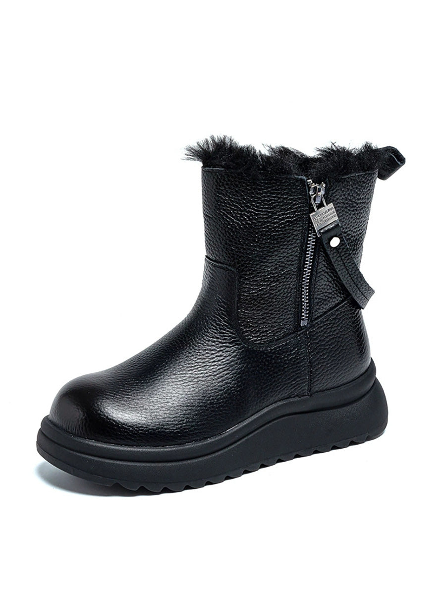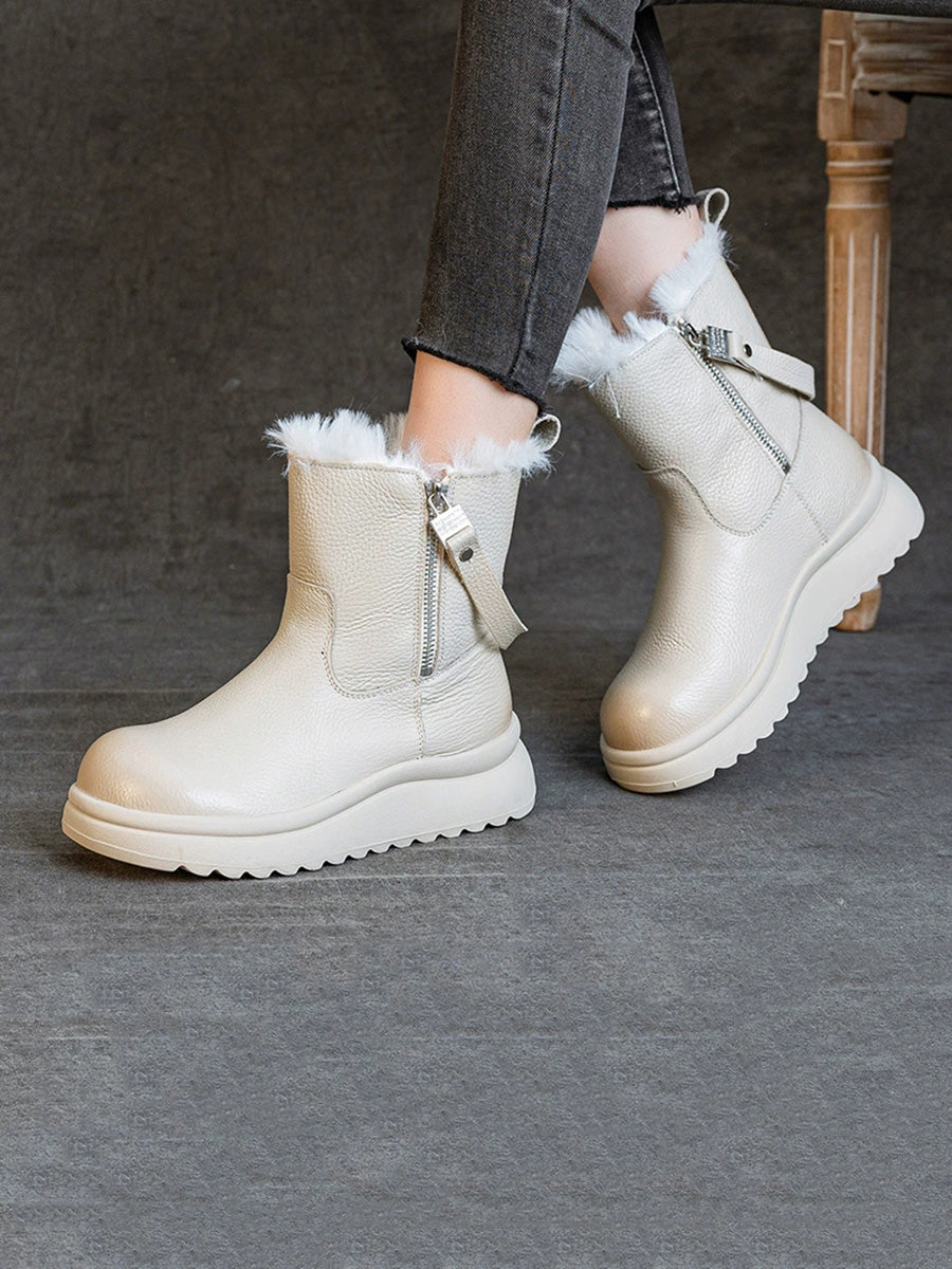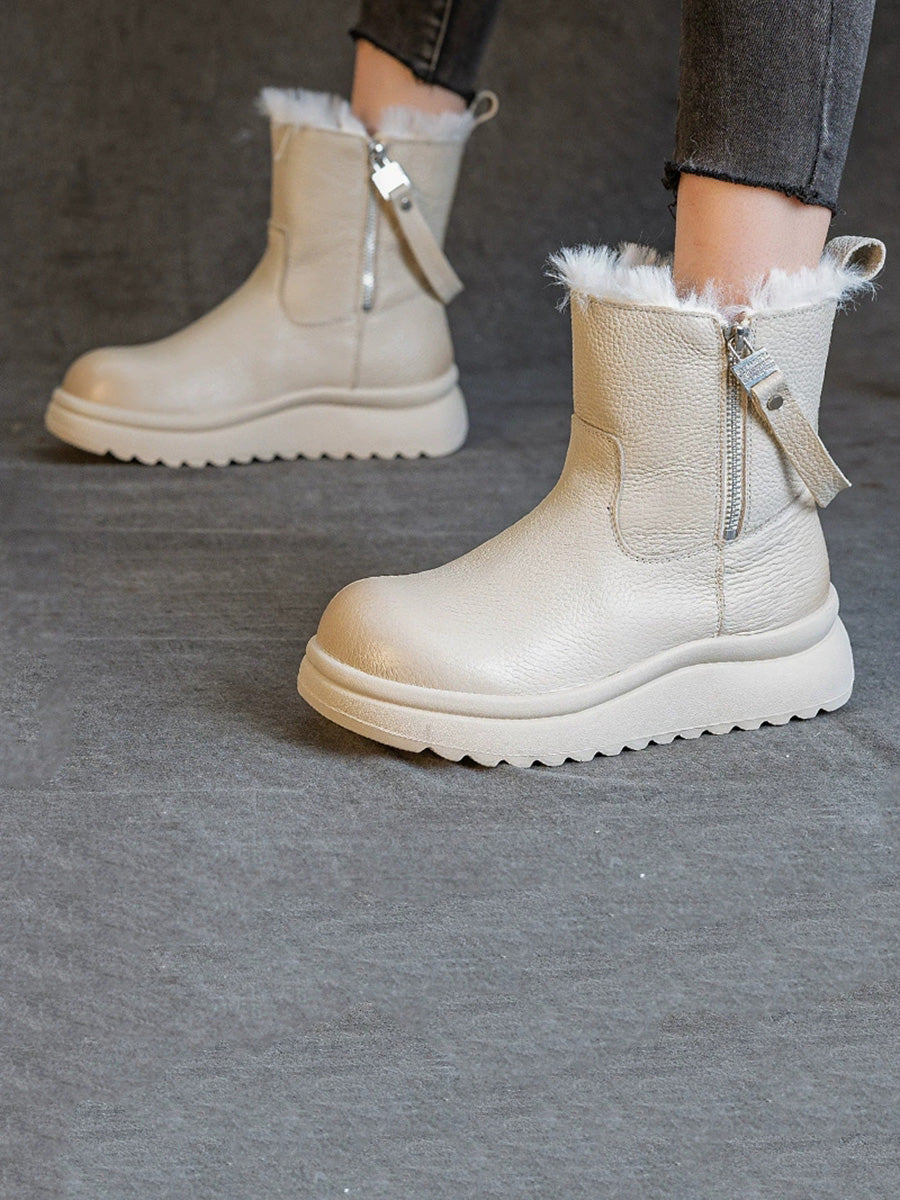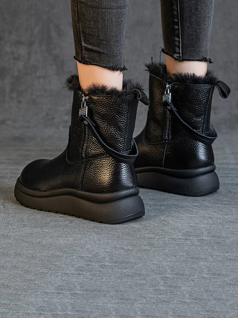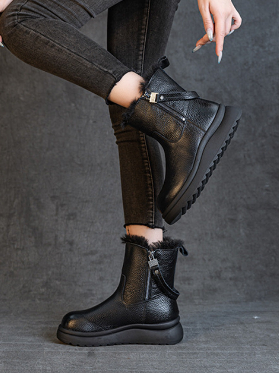 Kvinnors vinterstövlar i äkta läder med fleecefoder