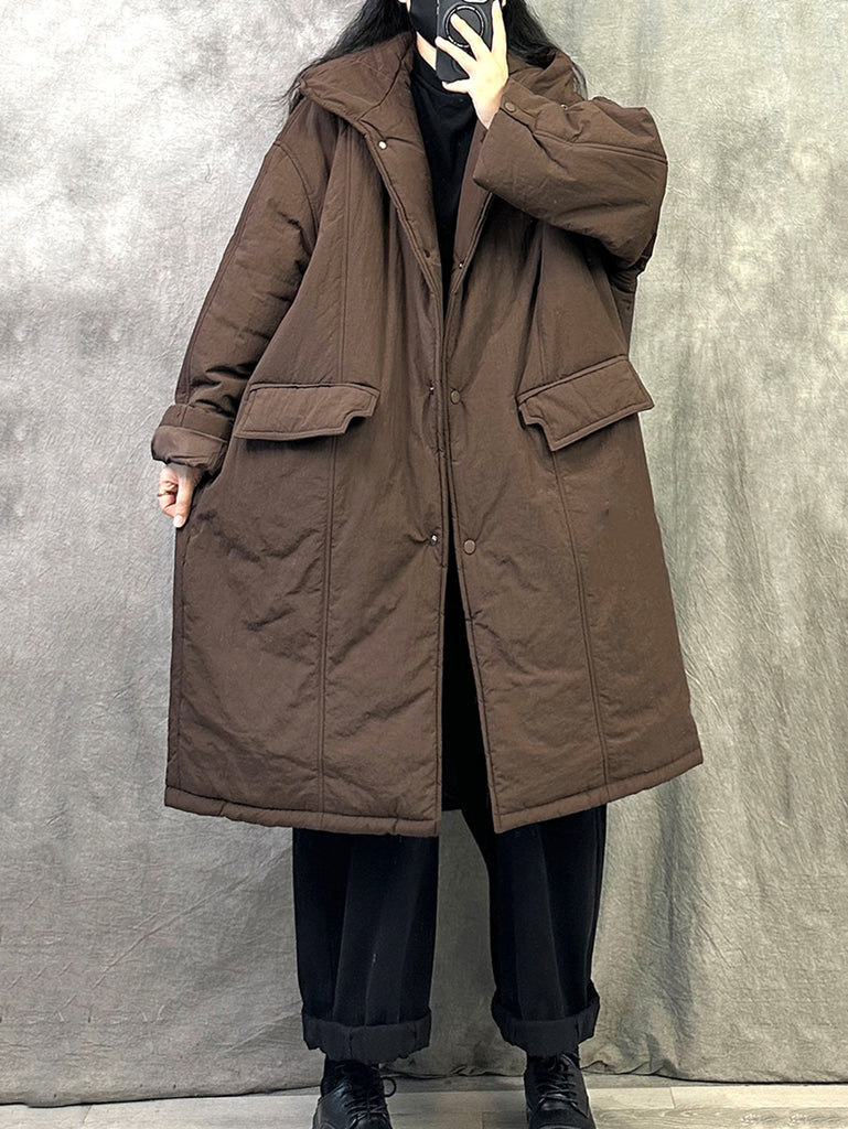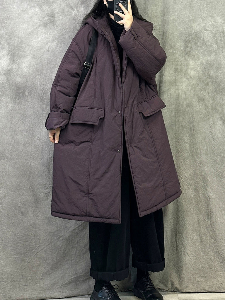 Kvinnors vinterrock i ren färg med huva och vadderad överrock