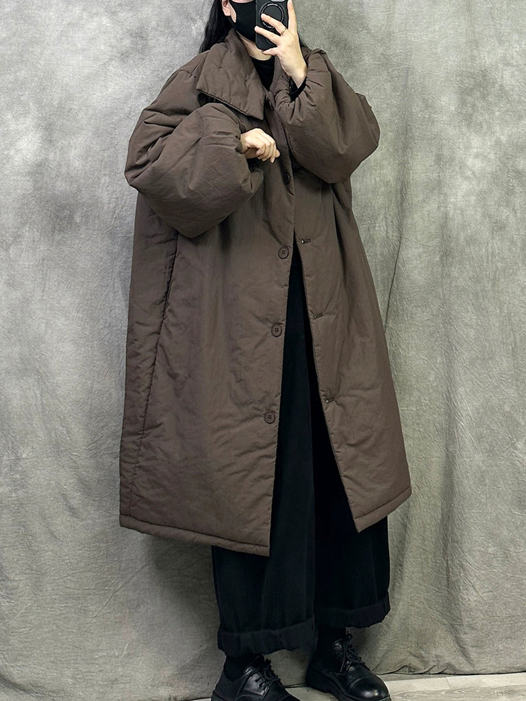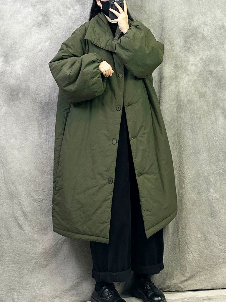 Kvinnors vinter casual ren färg vadderad O-ringad lång kappa