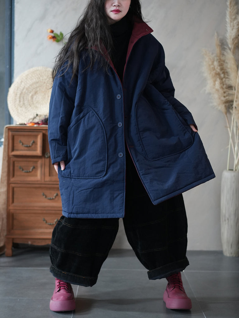 Kvinnors vinterrock i ren färg med ståkrage och vadderad överrock