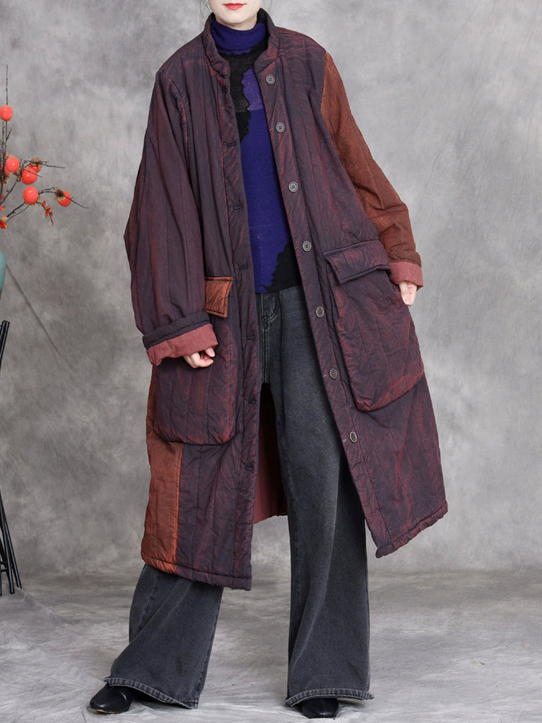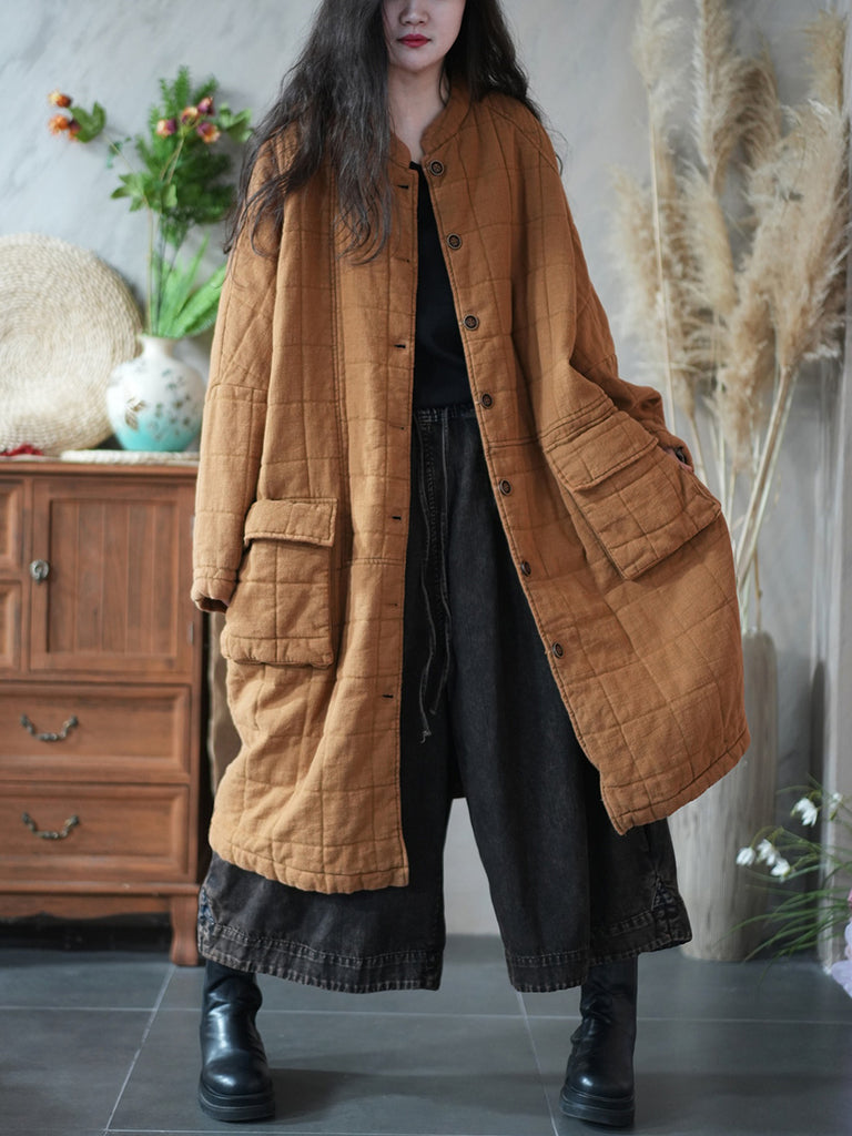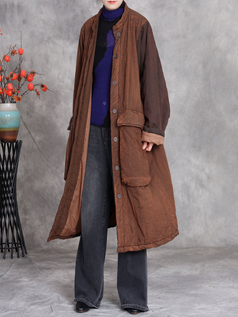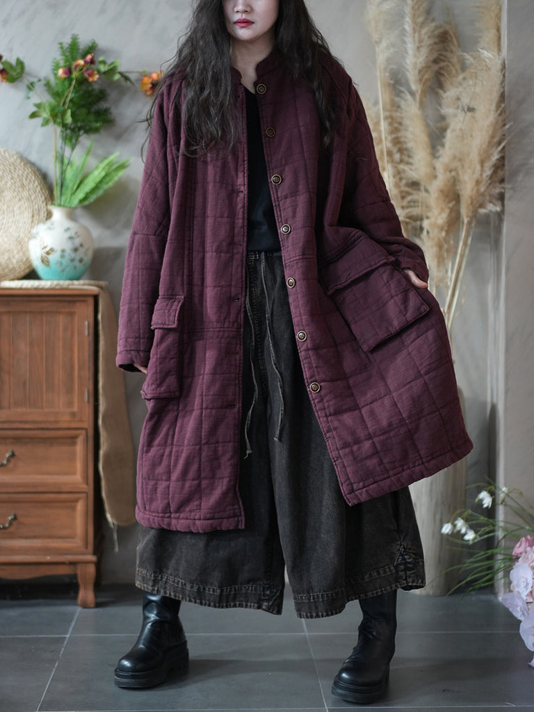 Kvinnors retro vinterkappa med ren färg och ståkrage