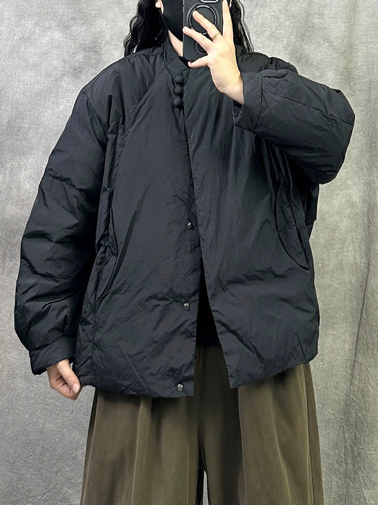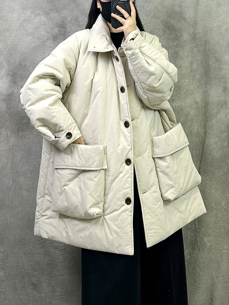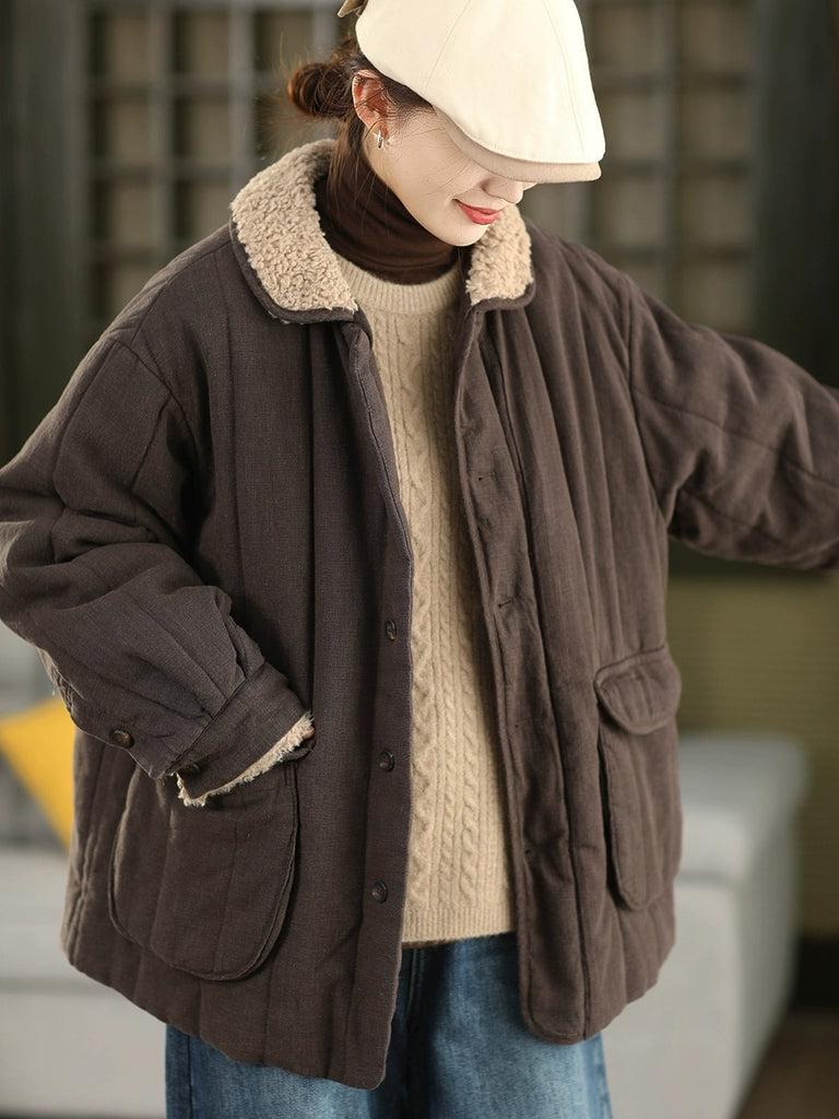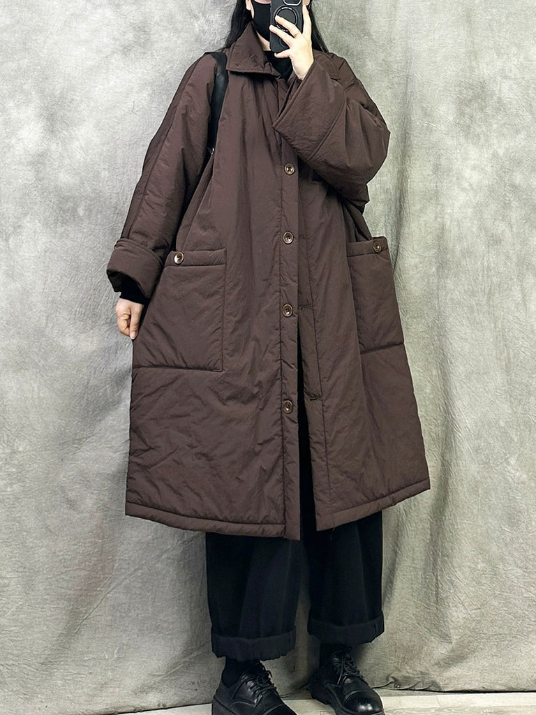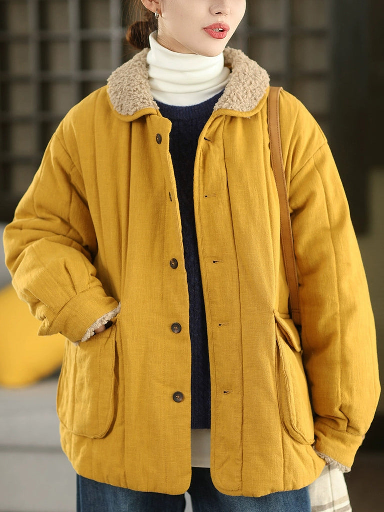 Kvinnors retro vinterkappa med ren färg och ståkrage