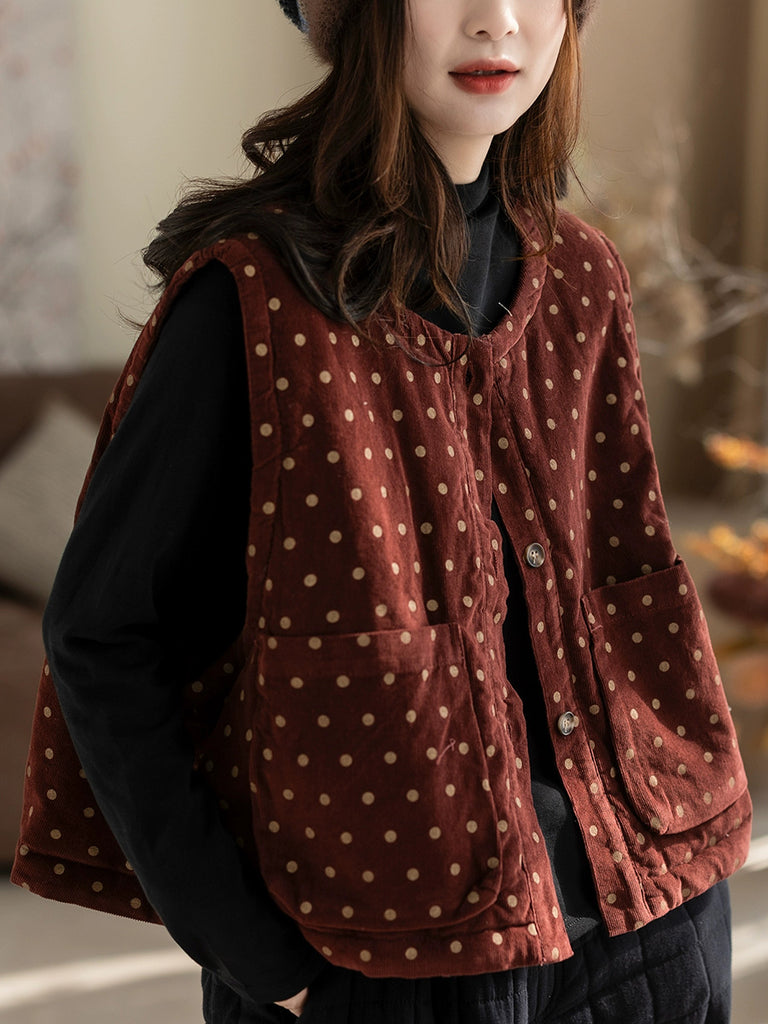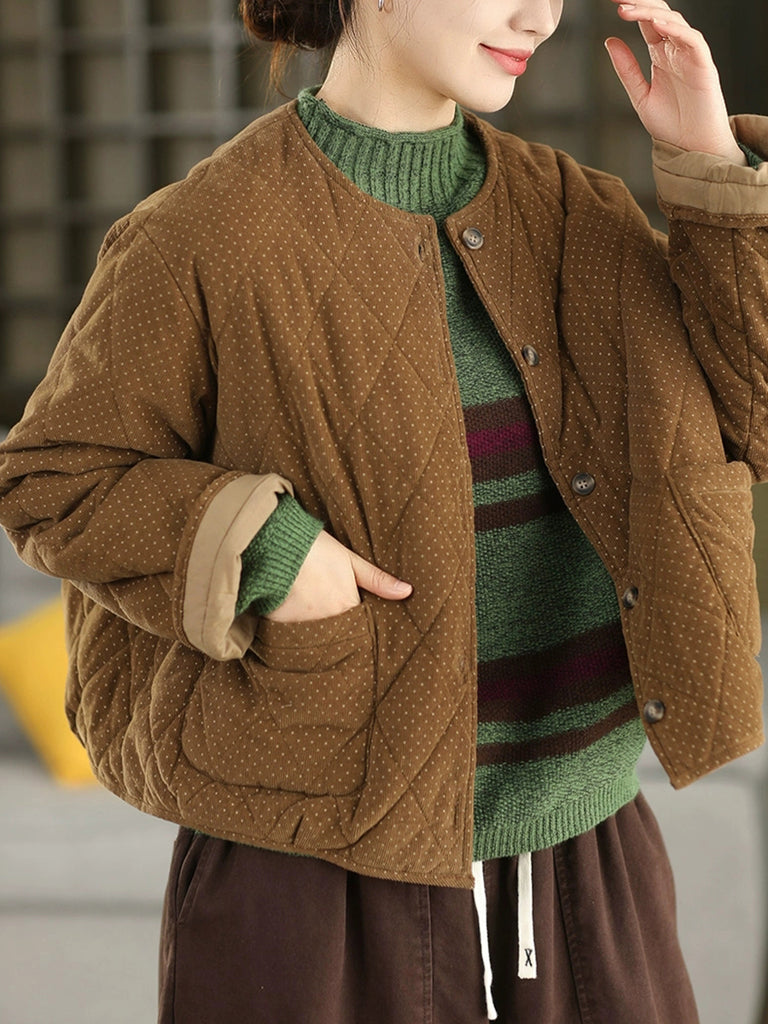 Dam Vinter Retro Dot O-ringad Corduroy Vadderad Jacka