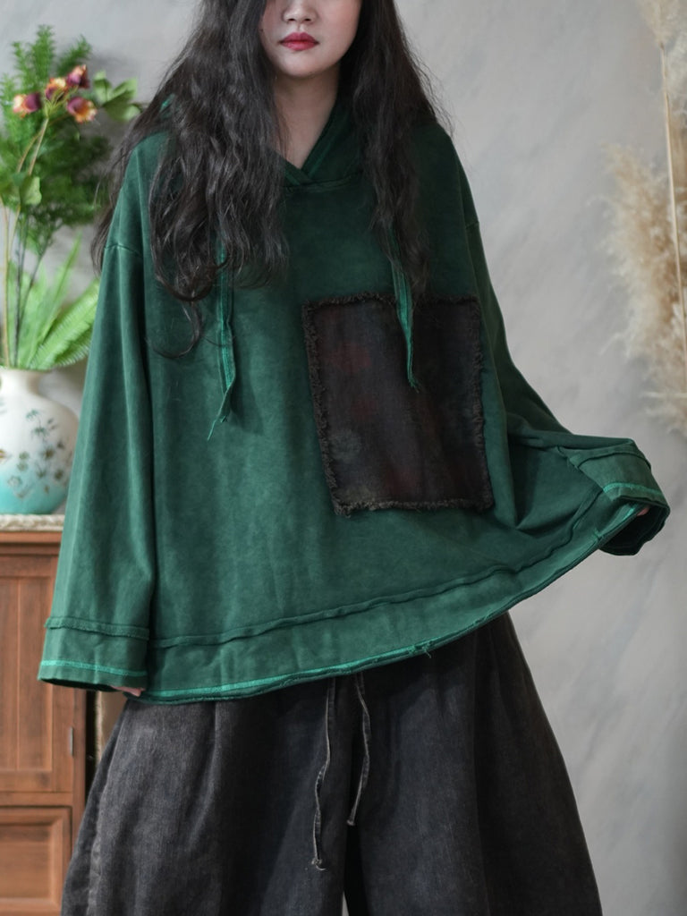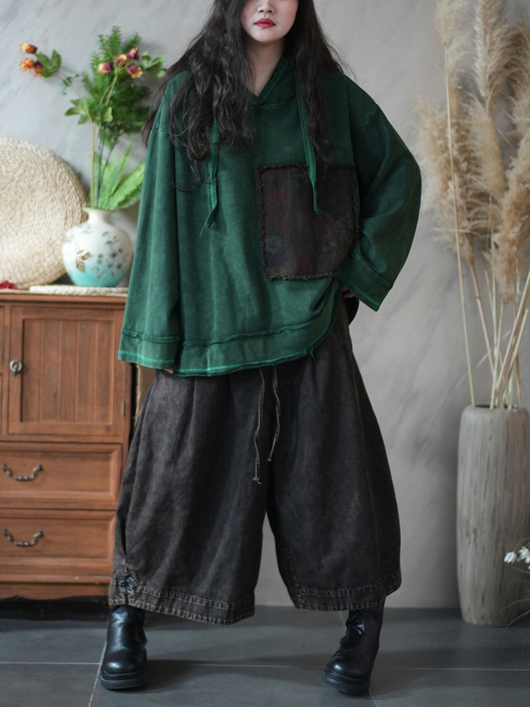 Dam Vinter Vintage Patchwork 100% Bomull Hoodie