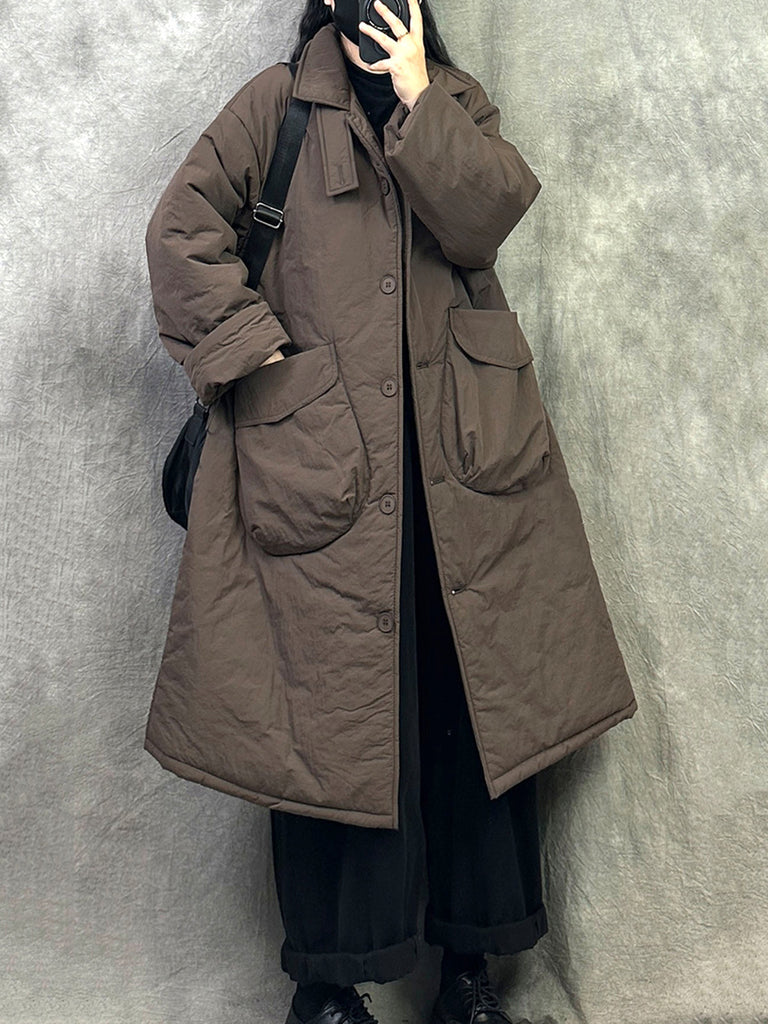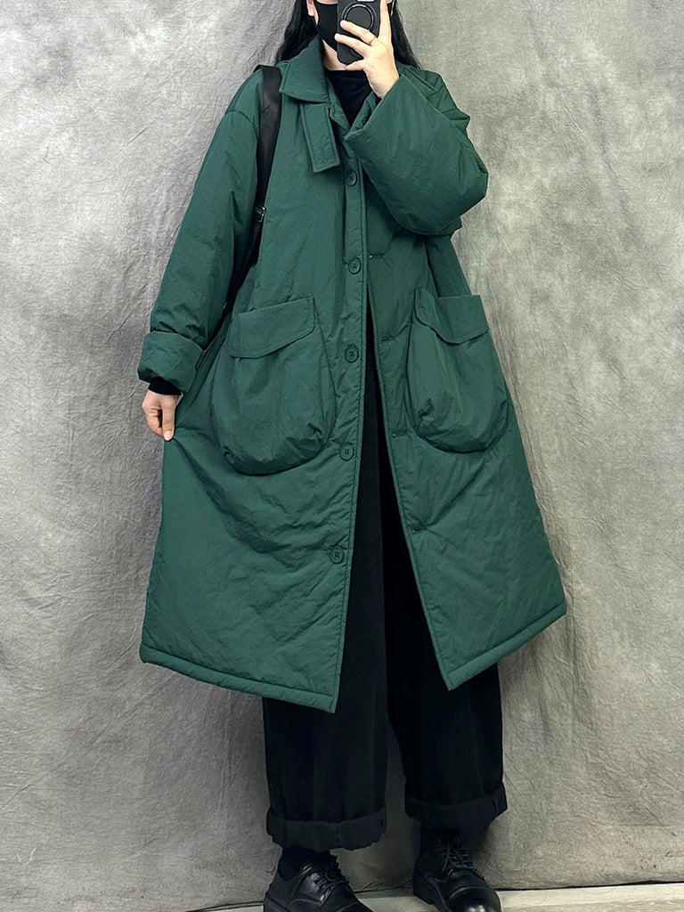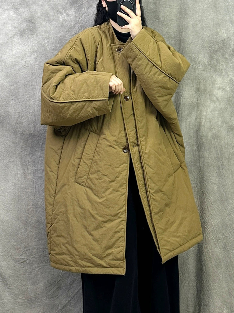 Kvinnors vinter casual ren färg vadderad O-ringad lång kappa