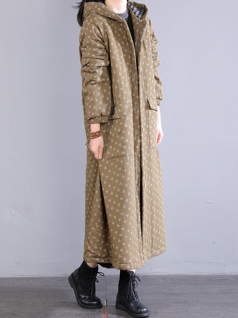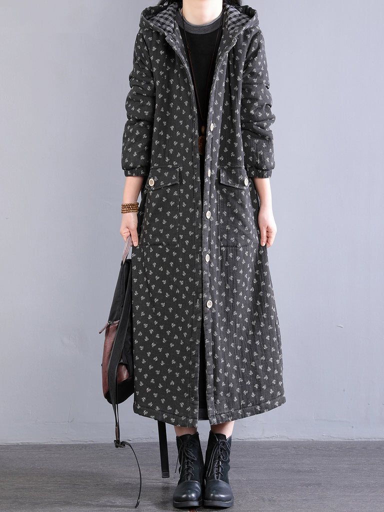Dam Retro Vinter Blommig Hoodad Vadderad Kappa