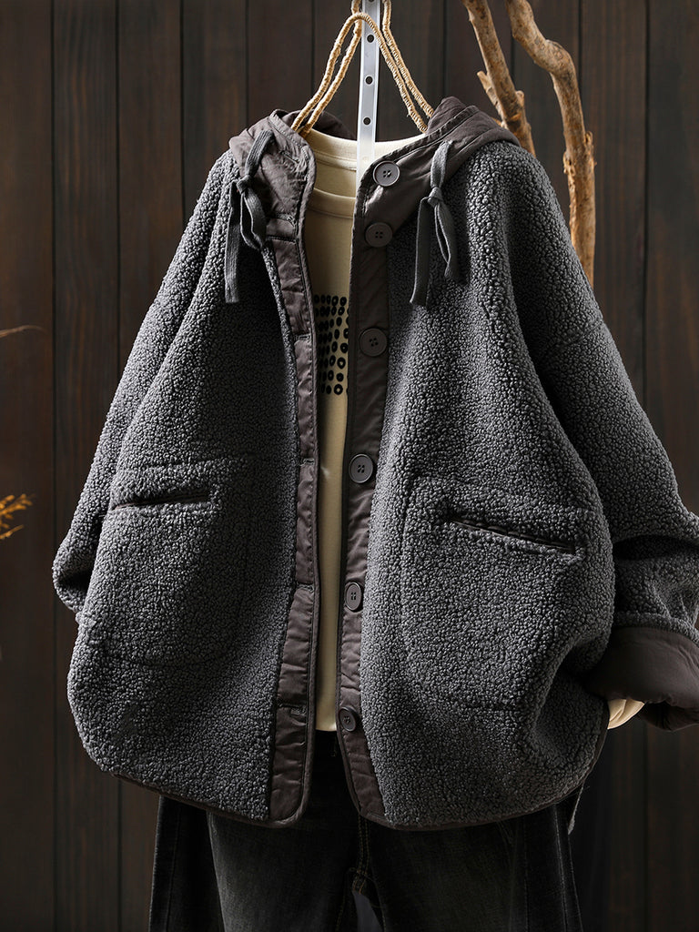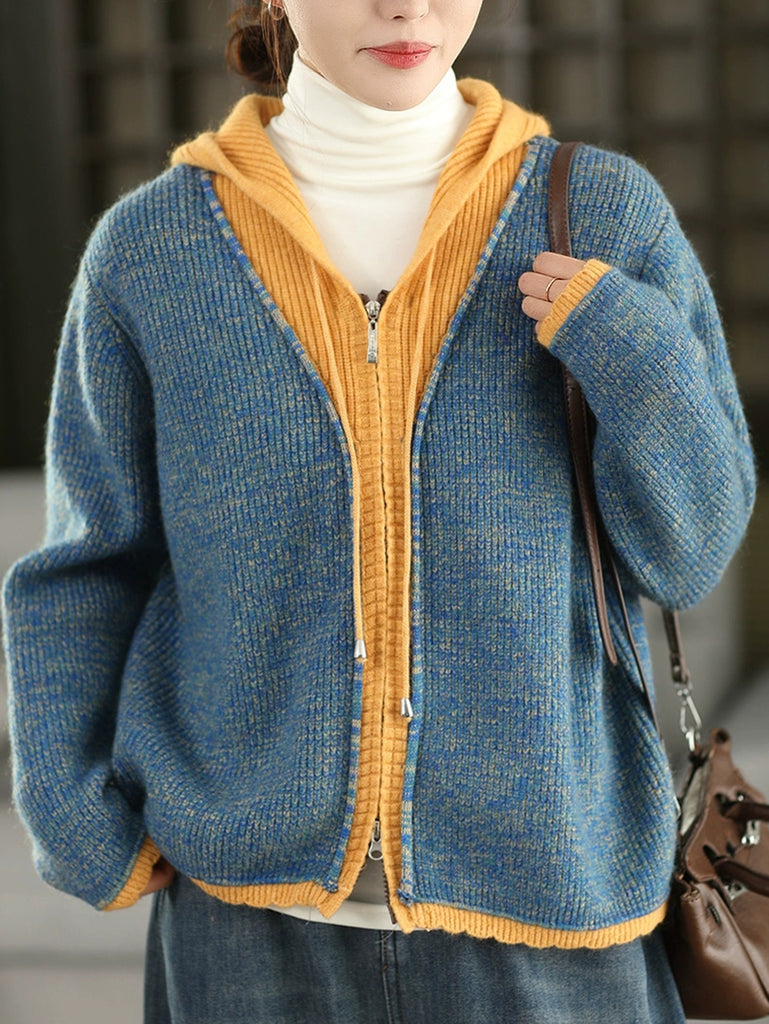 Dam höst retro ren färg huvad fleecejacka