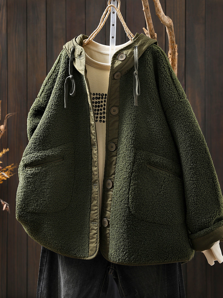Kvinnors vinter casual fleecefodrade huvblus i ren färg