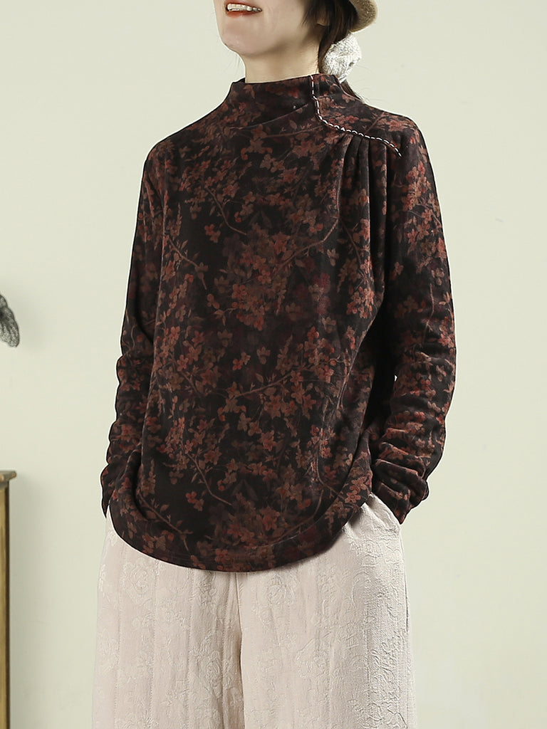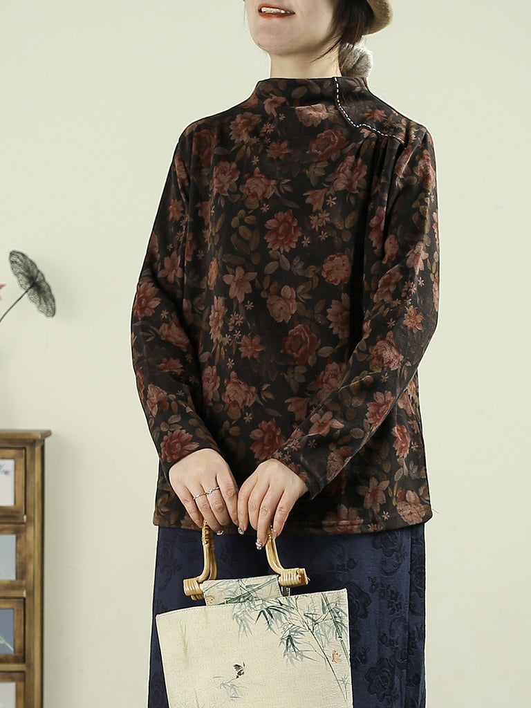 Damblus med halv polotröja och blommig höstmönster