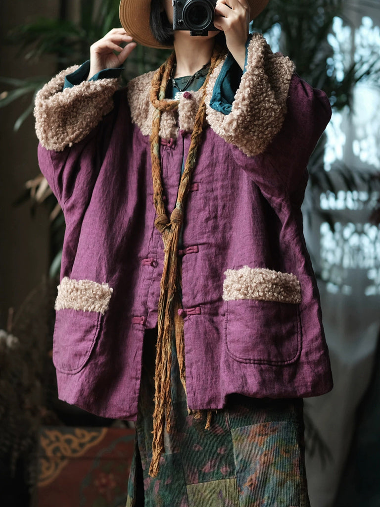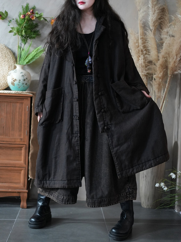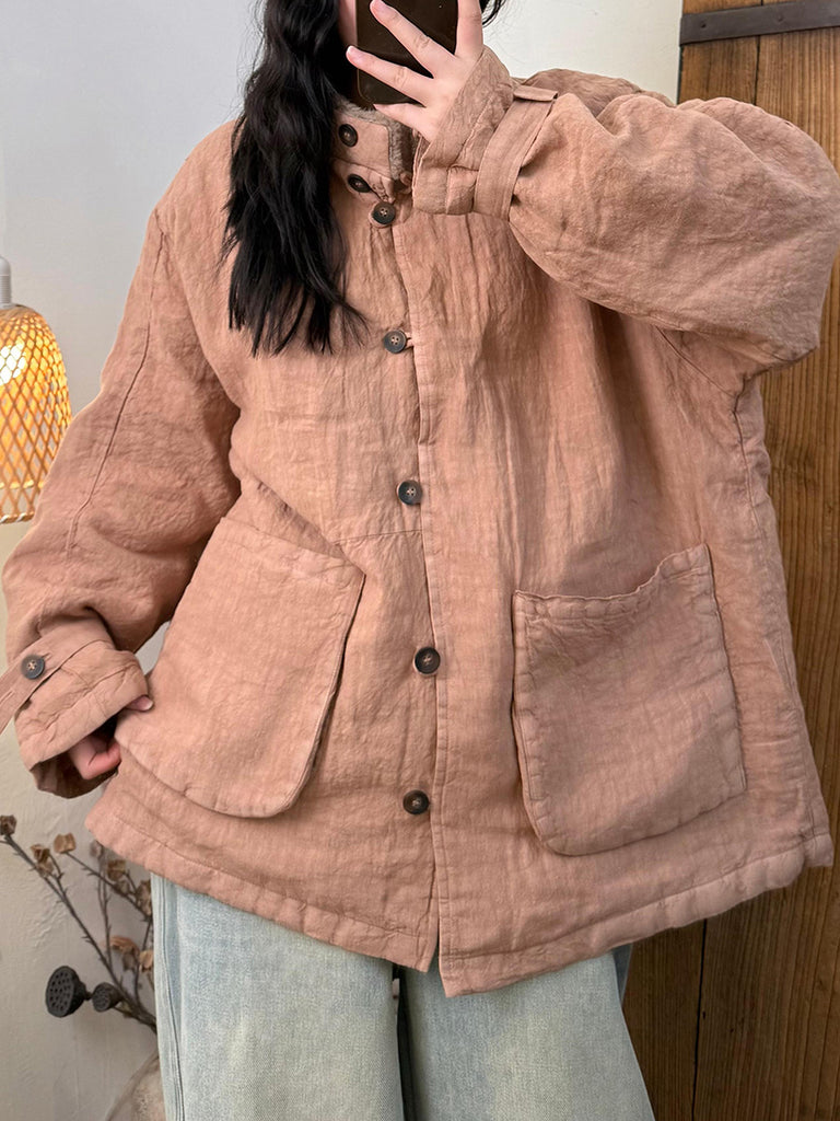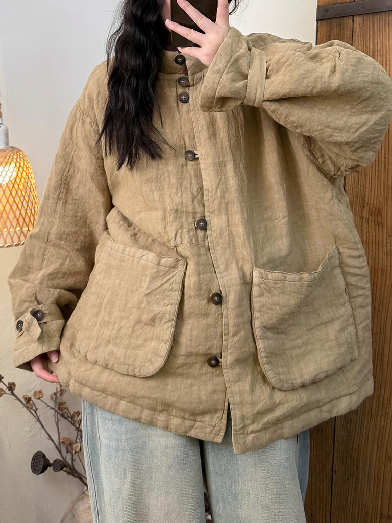 Vinterkappa med stående krage i 100 % linne för kvinnor, vintage