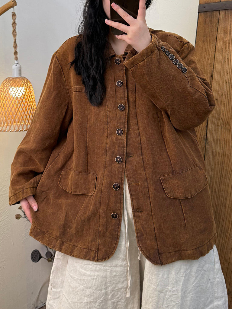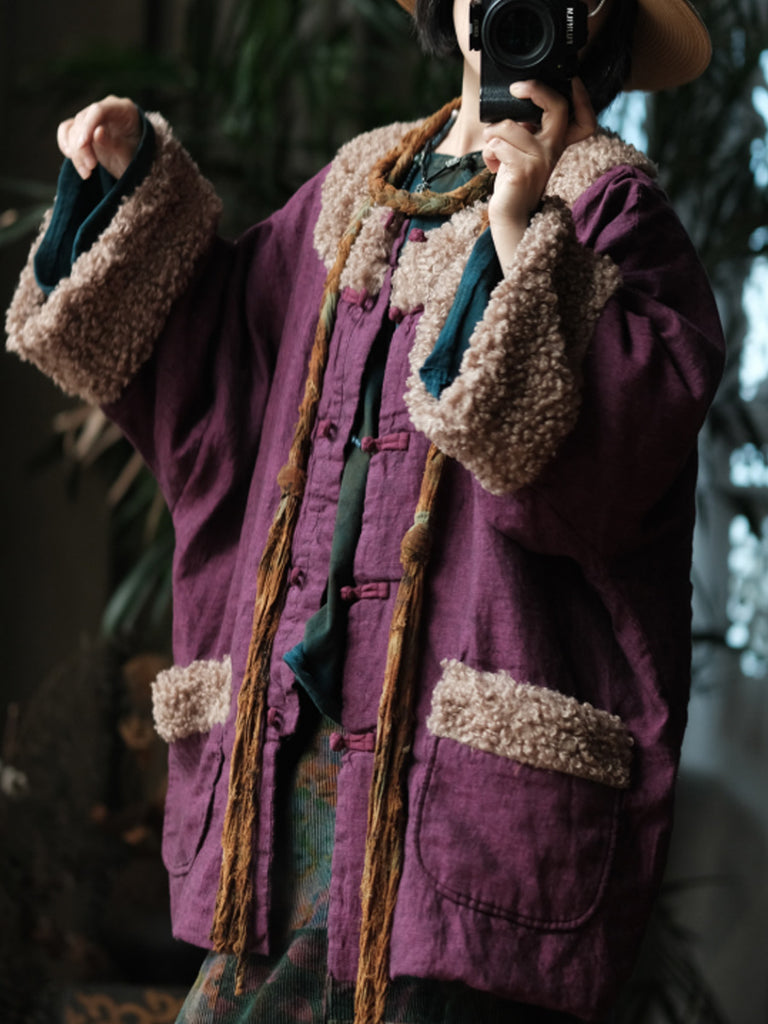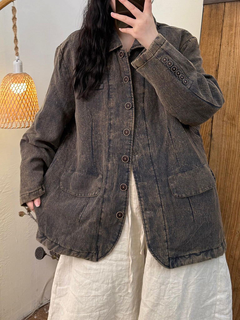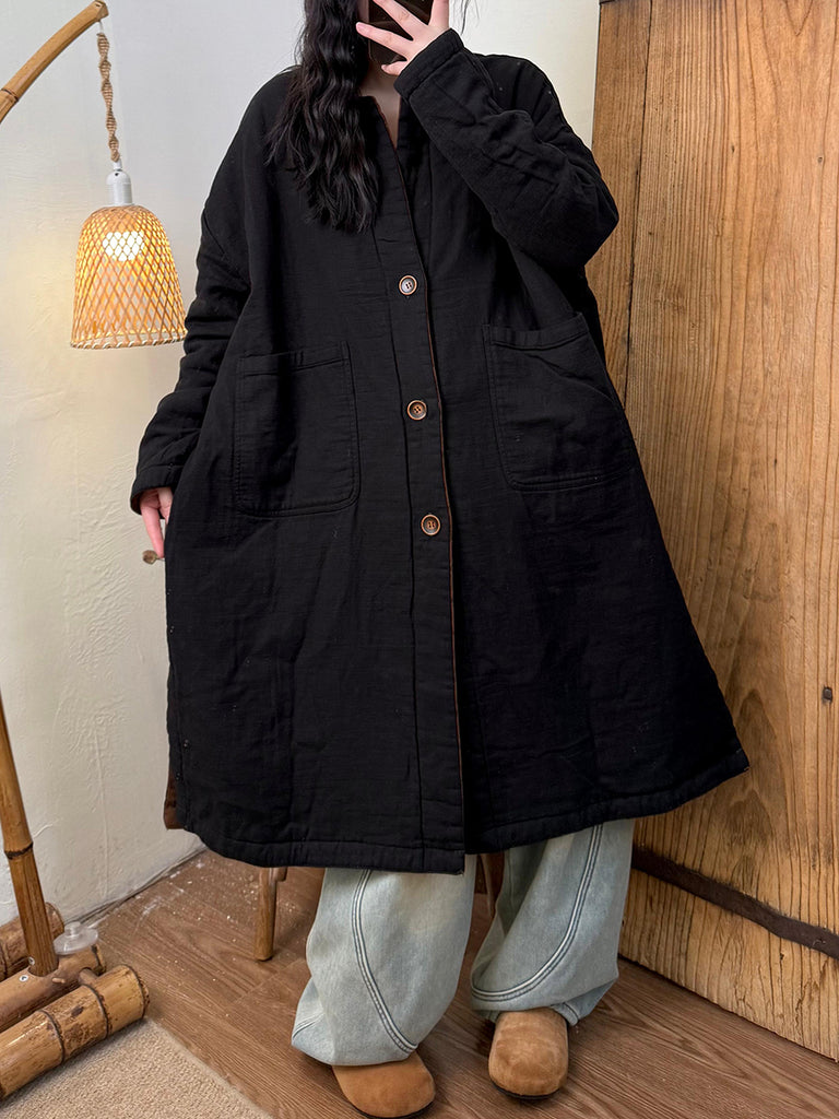 Vinterkappa med stående krage i 100 % linne för kvinnor, vintage