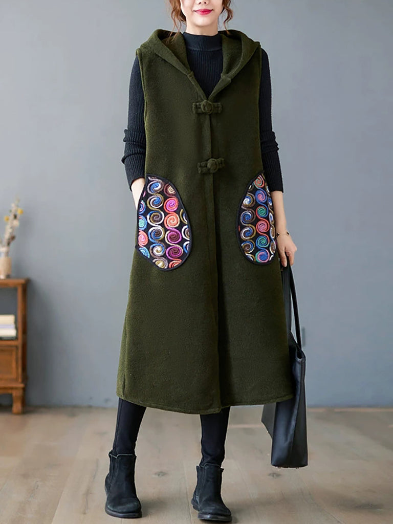 Kvinnors vintage vinterkappa i ren färg med nedfällbar krage