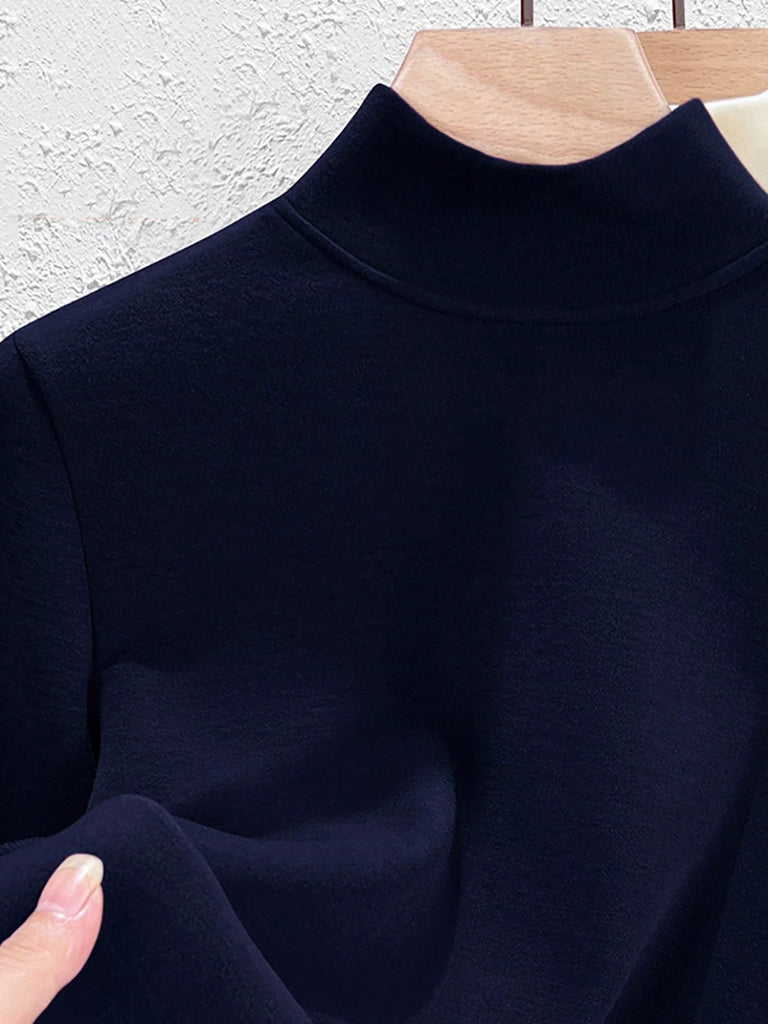 Kvinnors vinter casual ren färg polotröja med nederkant