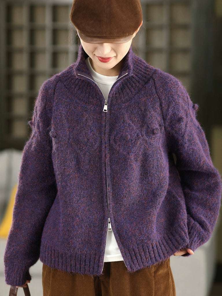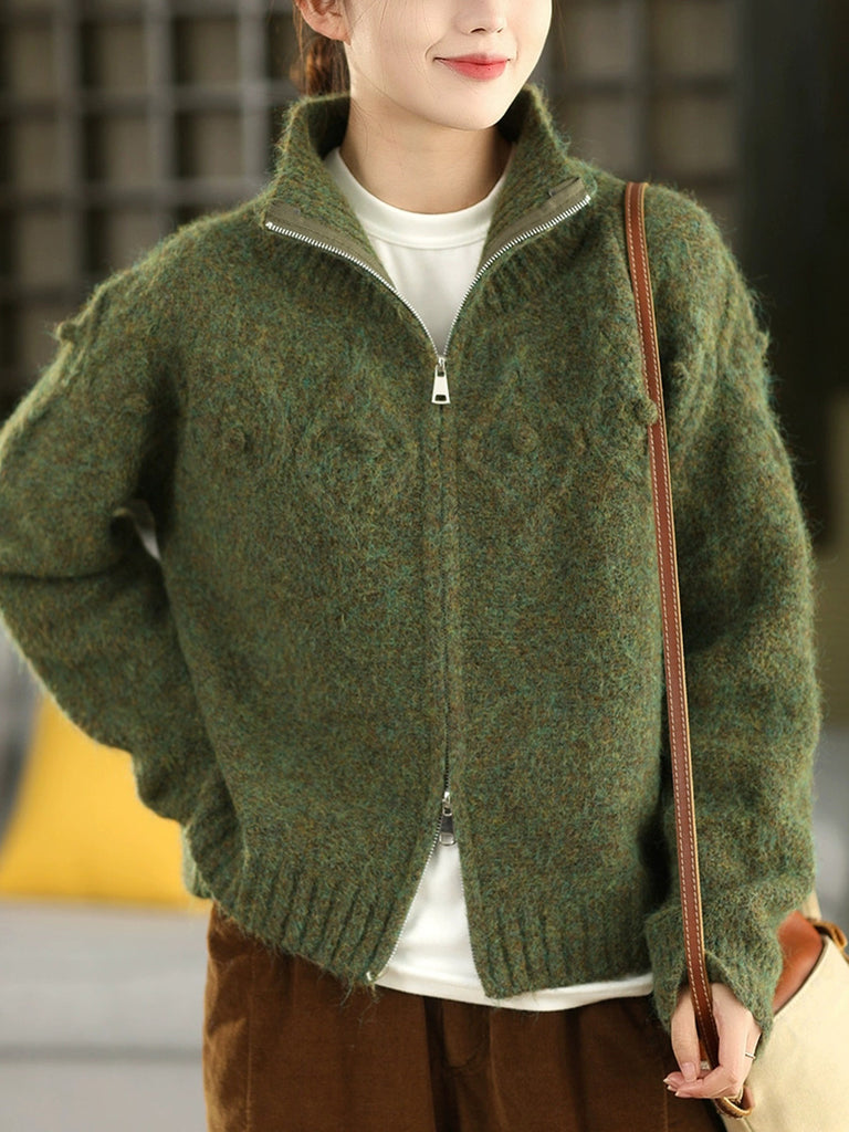 Dam Höst Retro Ren Färg Stickad Stand Collar Tröja