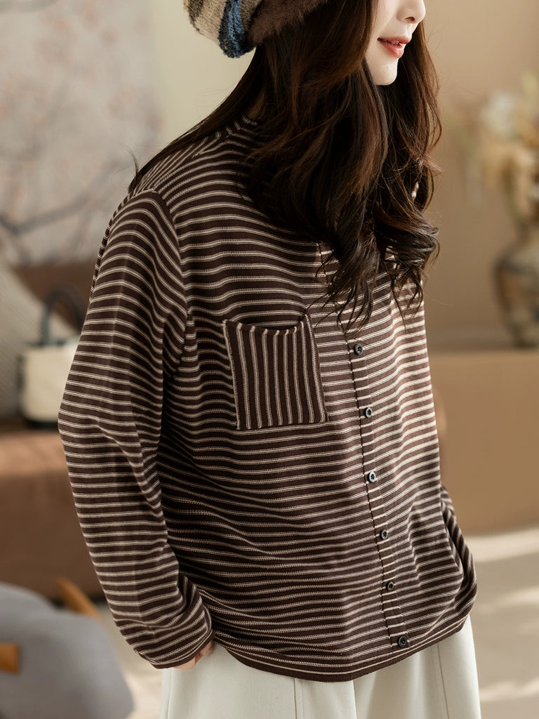 Dam Casual Höstblus i ren färg i bomull med polotröja