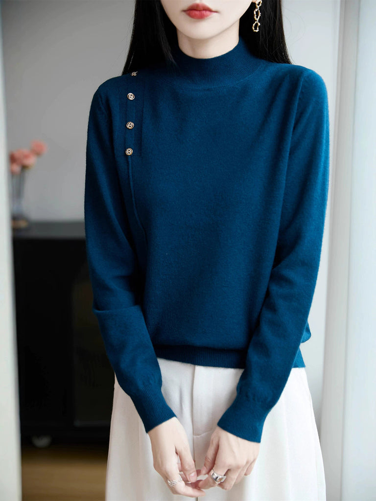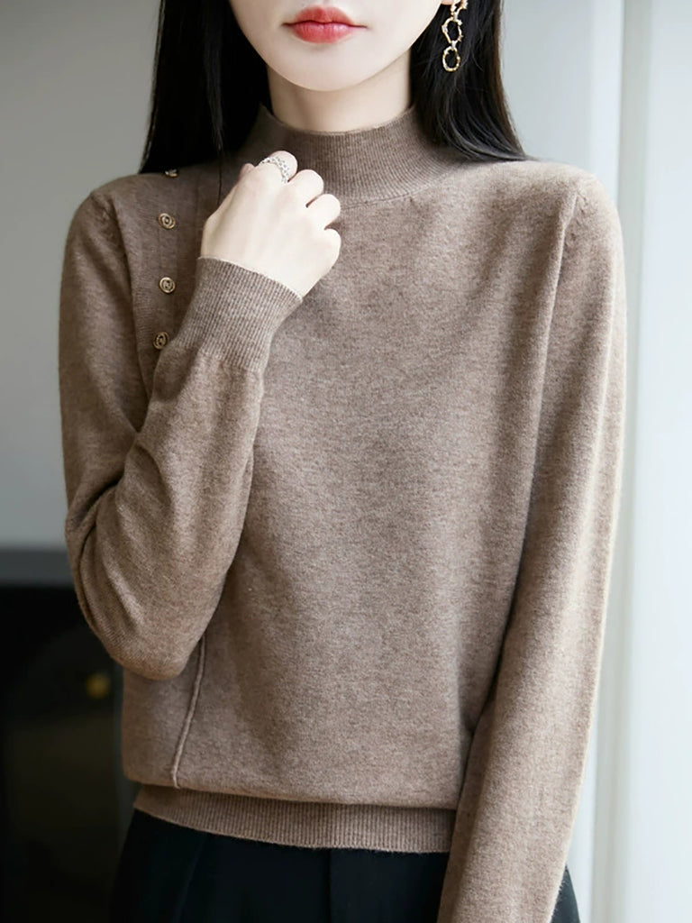 Dam Höst Casual Ren Färg Stand Collar Tröja