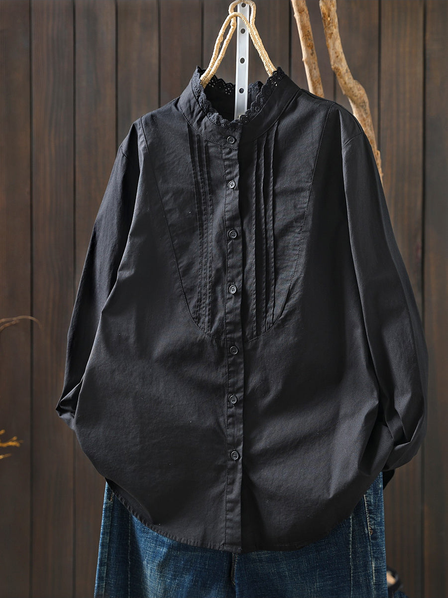 Vårskjorta med konstnärlig rynkad 100 % bomull och stående krage för kvinnor