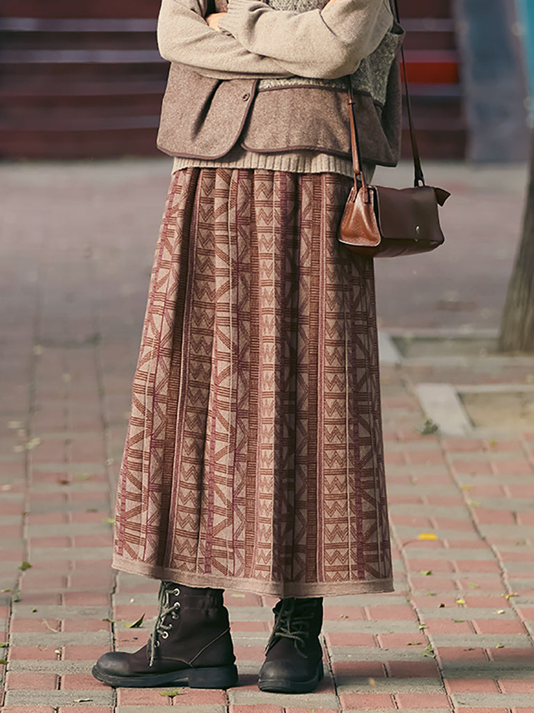 Dam Höst Retro Jacquard A-formad Bomullskjol