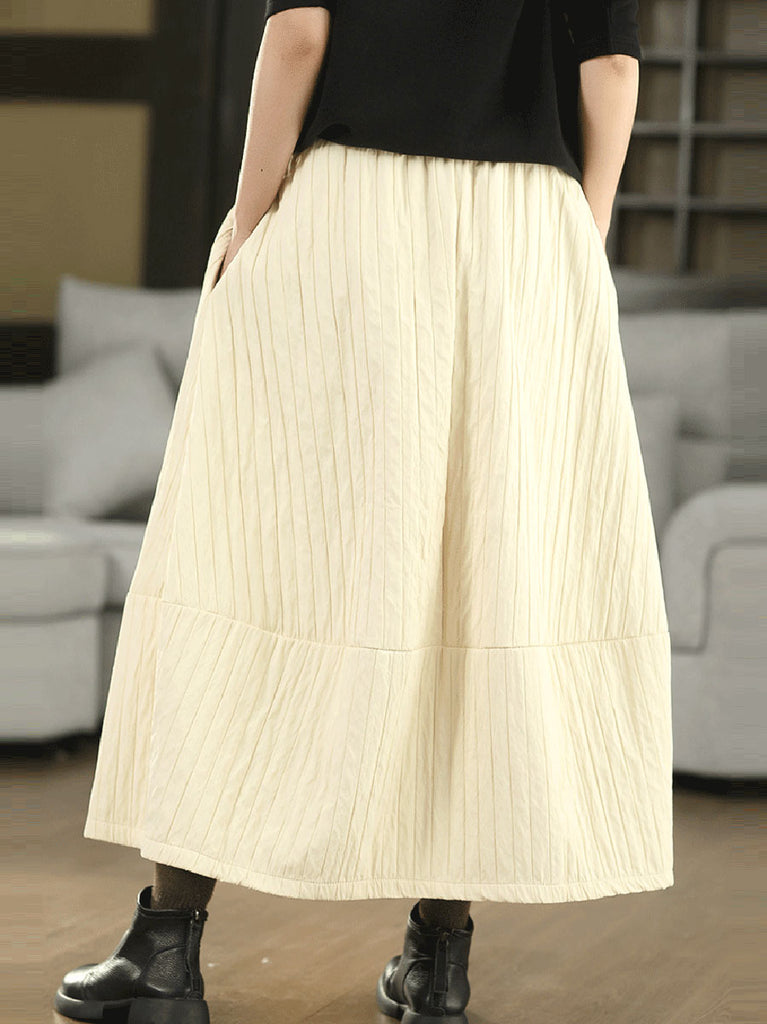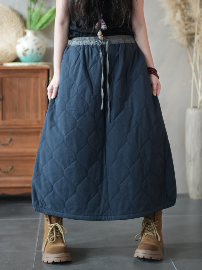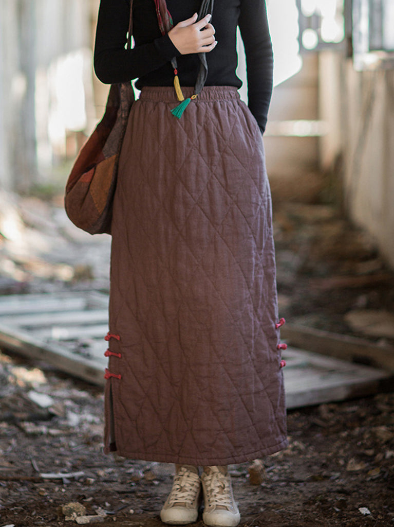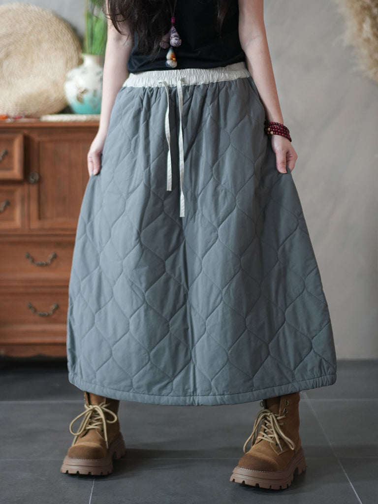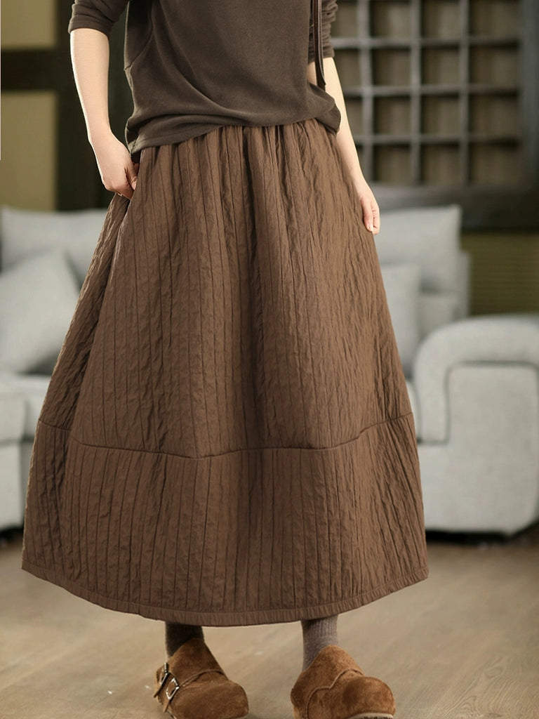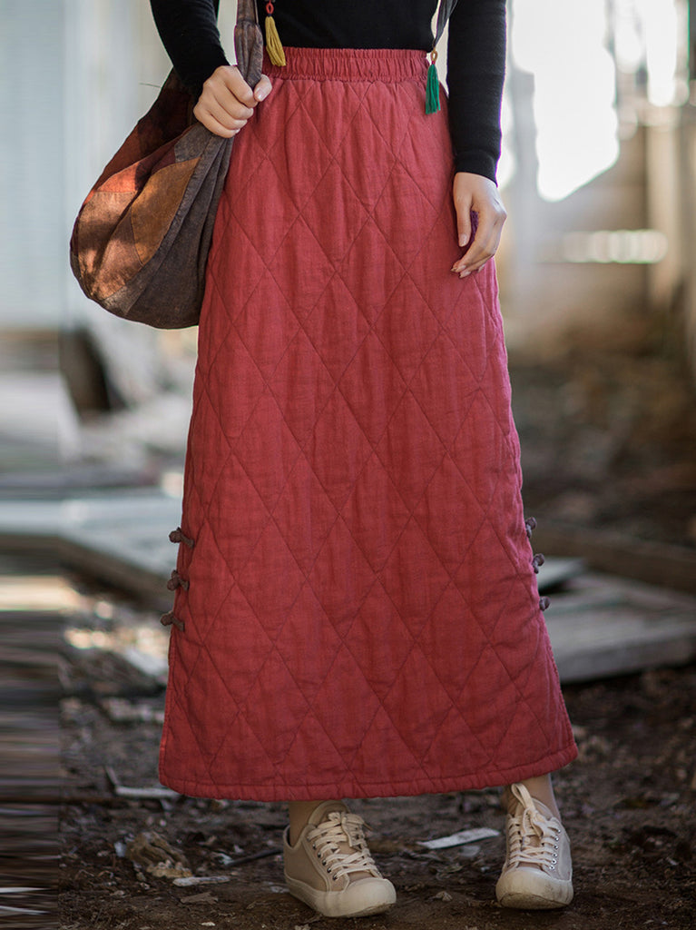 Kvinnors höst etniska renfärgade A-formade ramie vadderade kjolar
