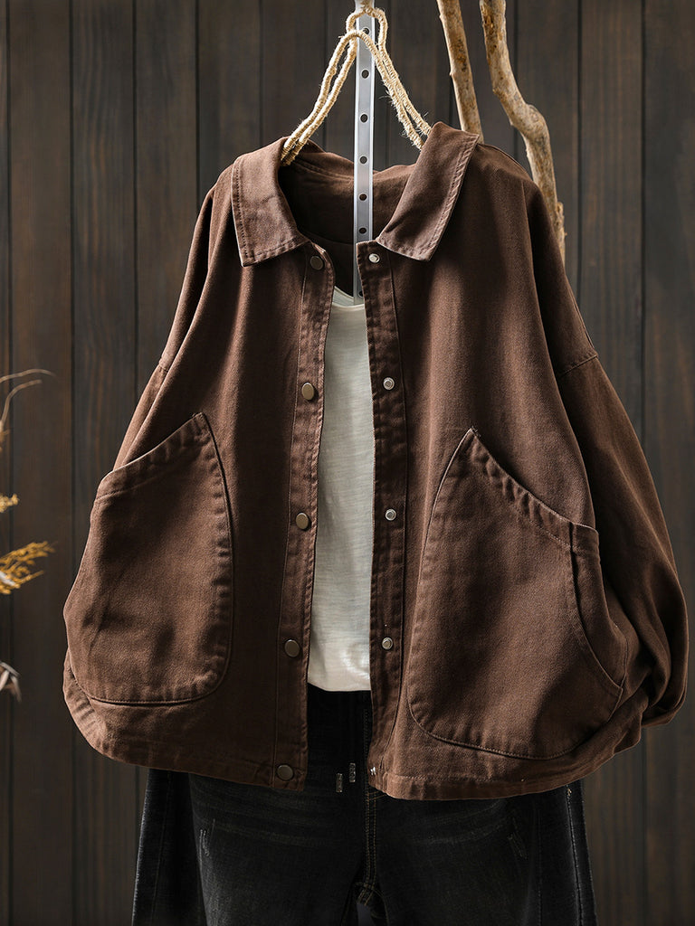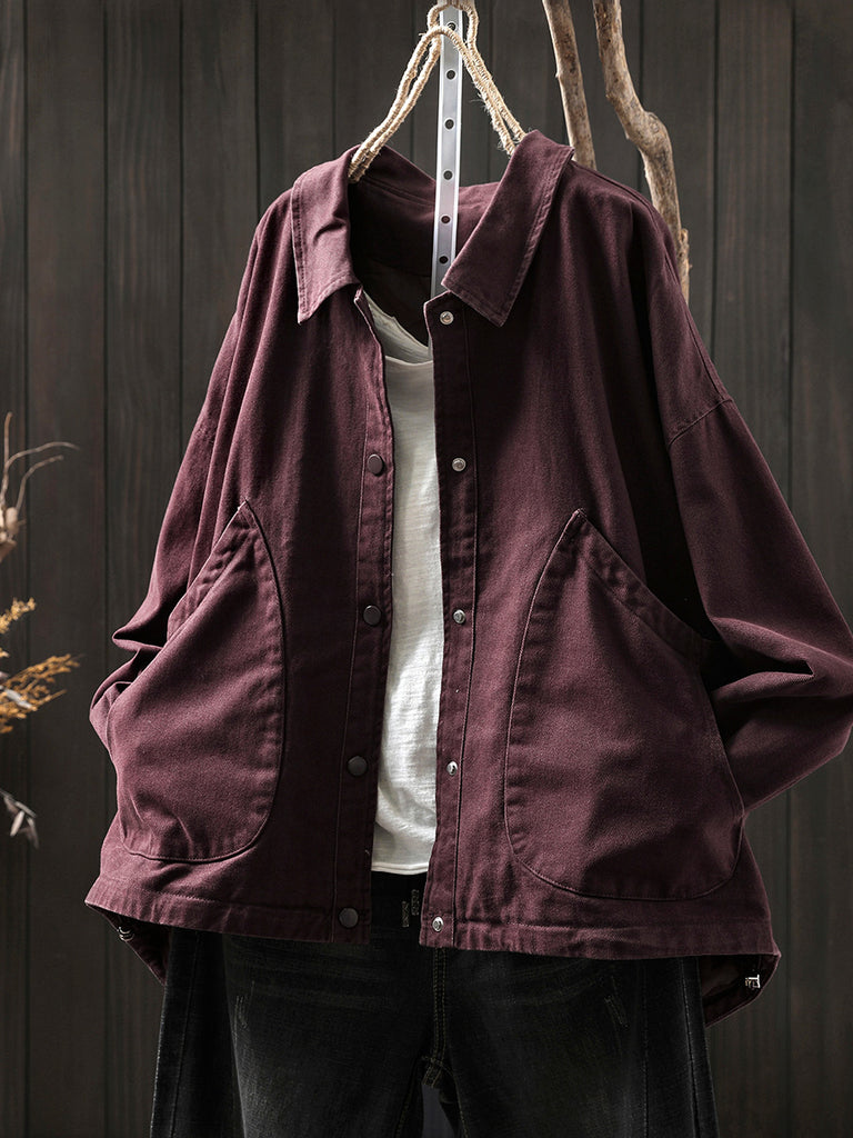Kvinnors skjortkappa i ren färg med nedfällbar krage i 100 % bomull