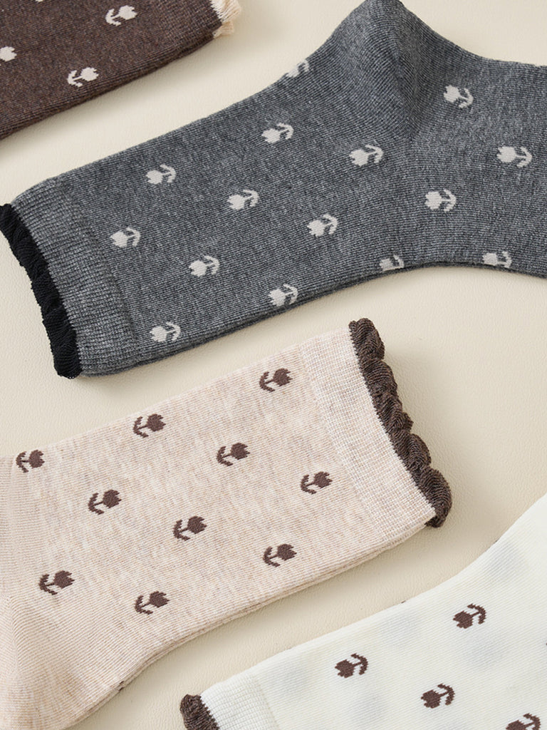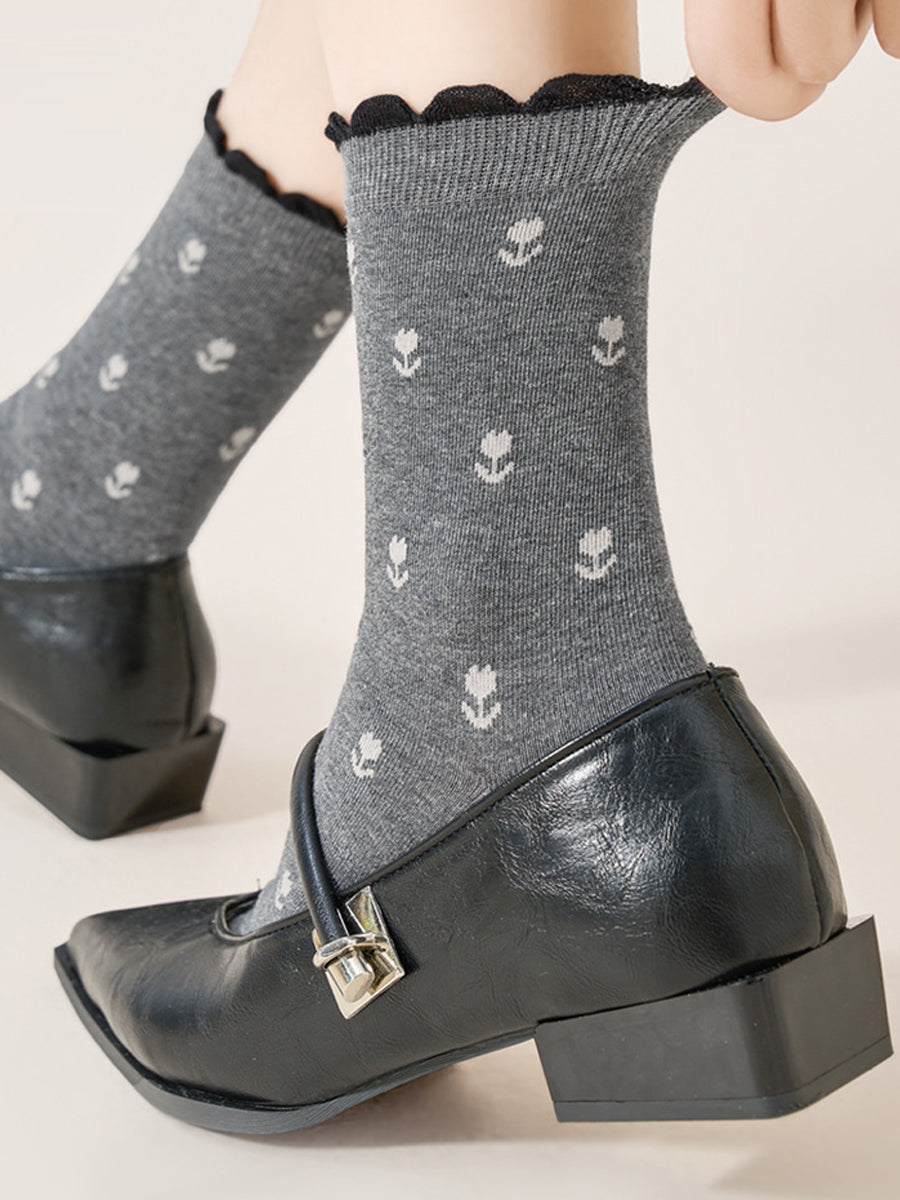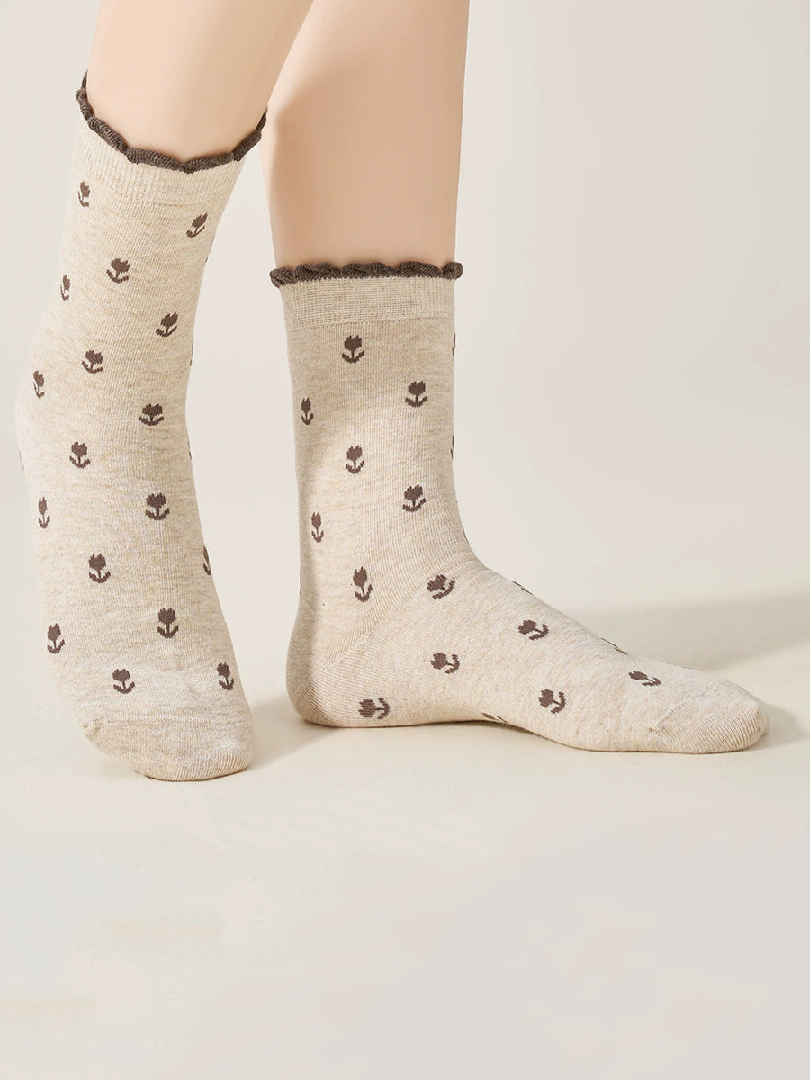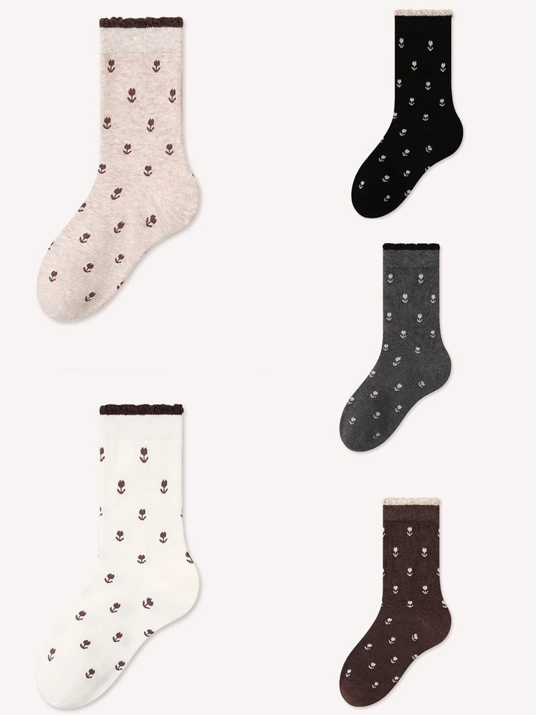 5 par damstrumpor med vintagemotiv och blommigt bomull