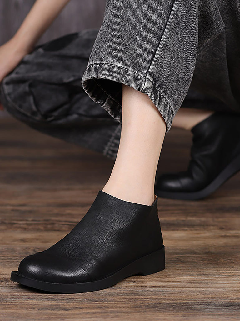 BUYKUD Handgjorda äkta läder vintage korta stövlar för kvinnor