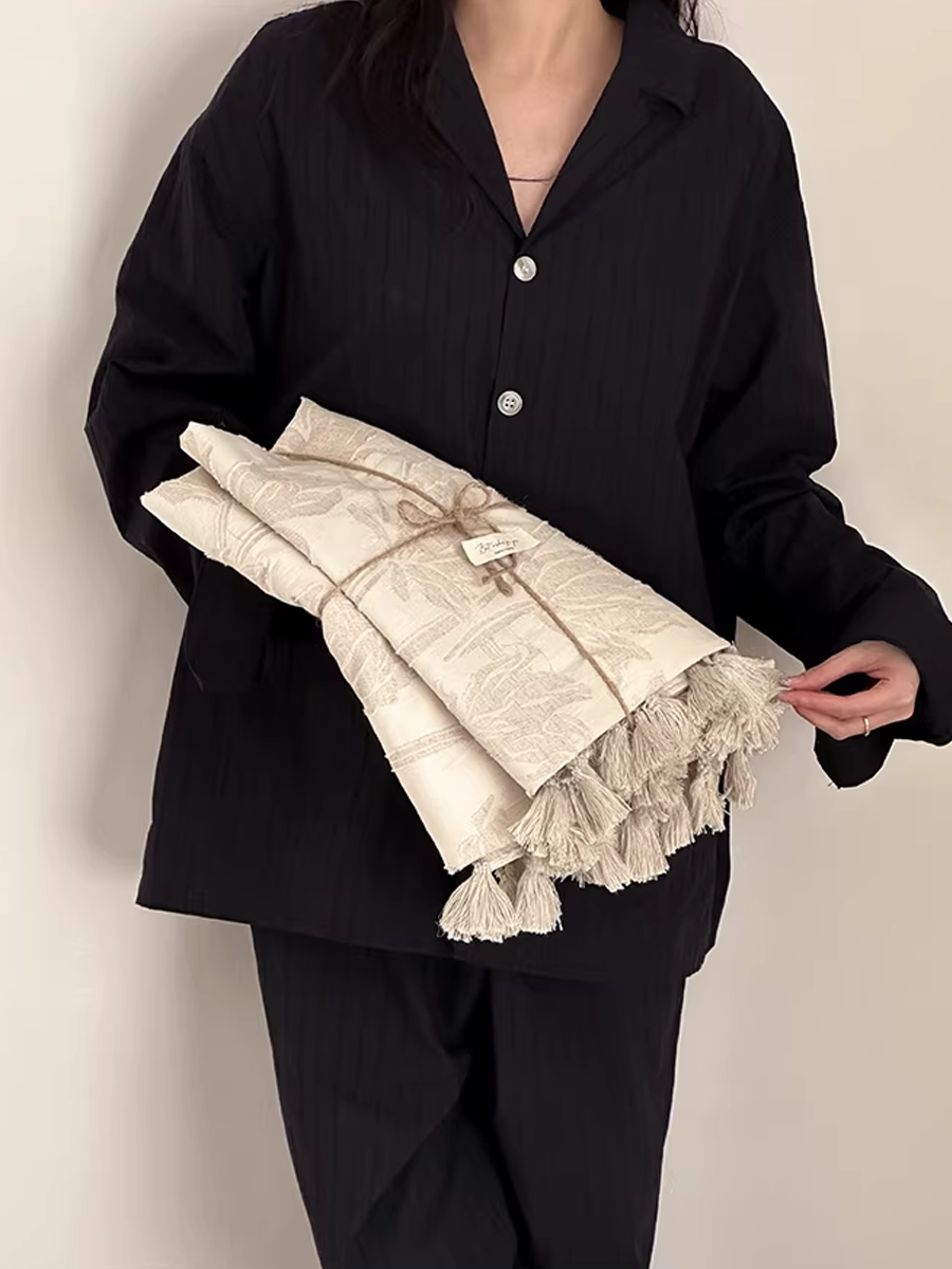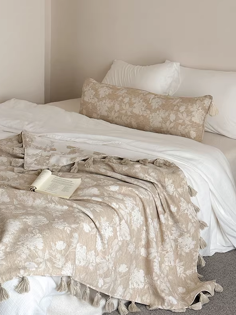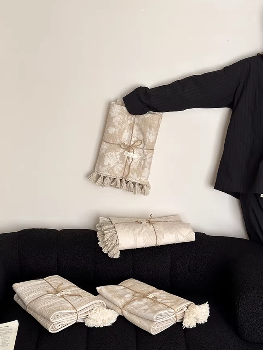 Retro texturerad filt i bomullslinne med blommig jacquard