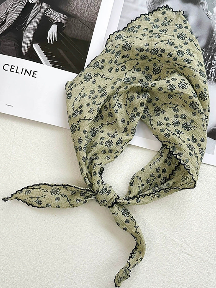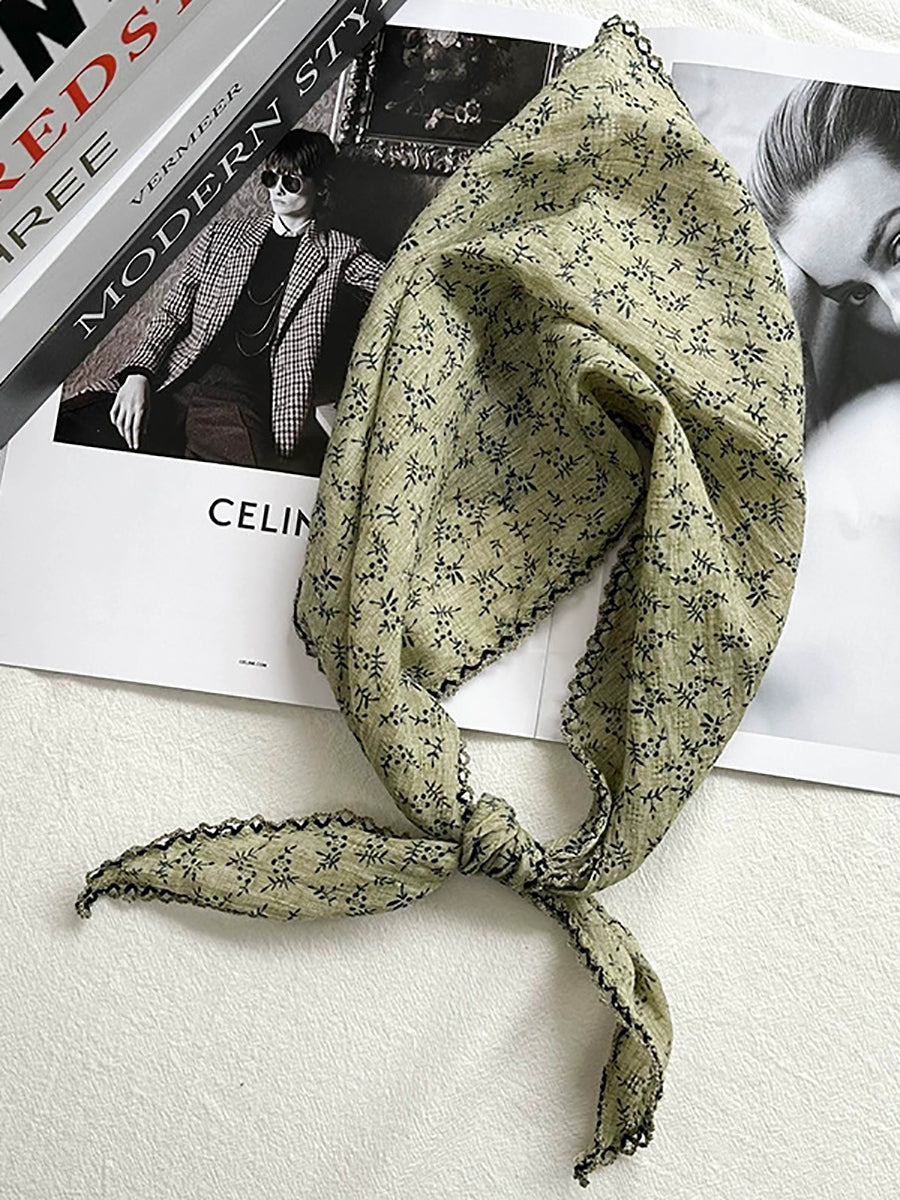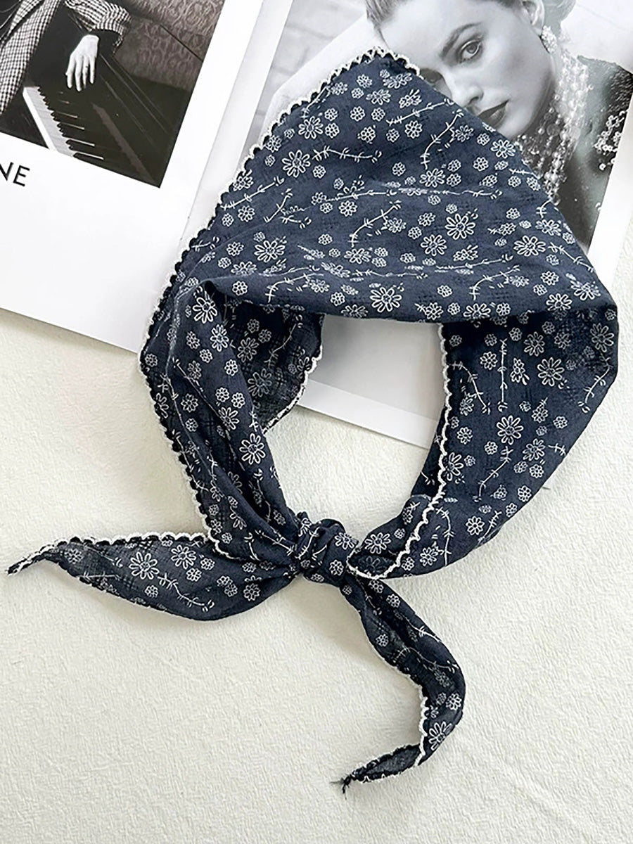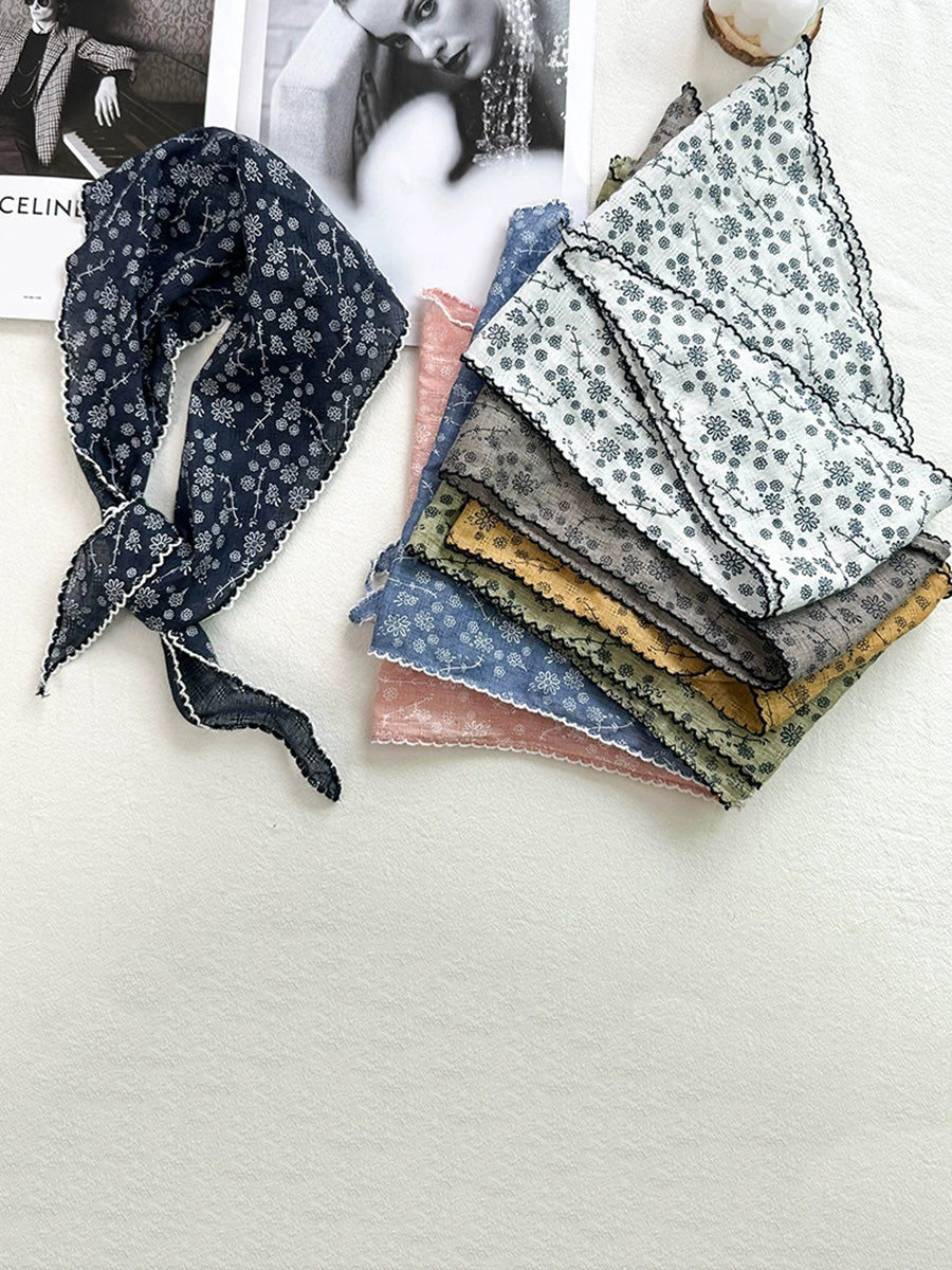 Konstnärlig blommig triangelhalsduk för kvinnor i bomull