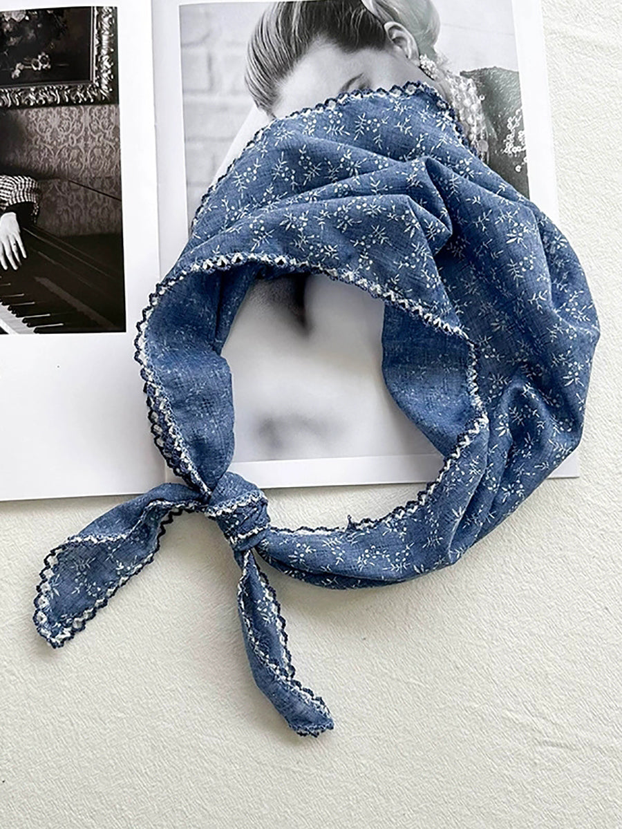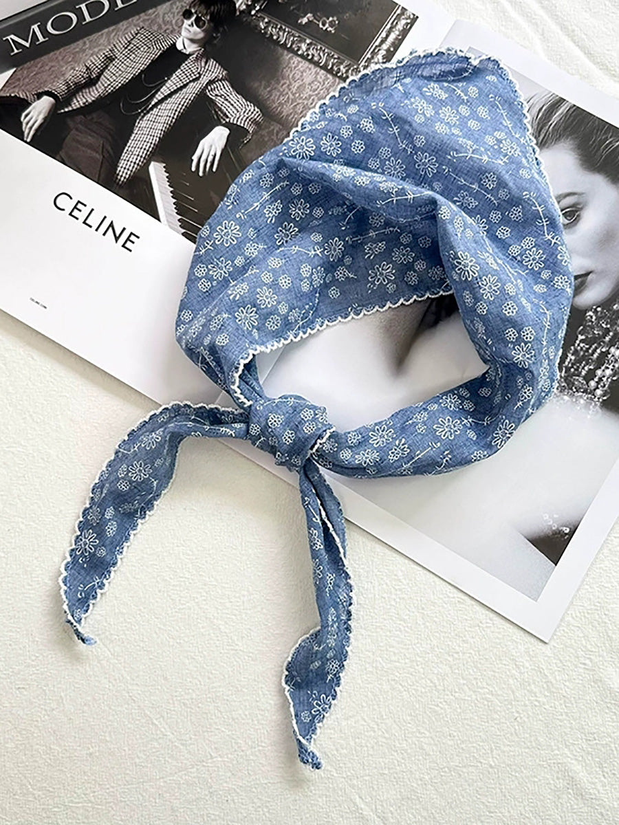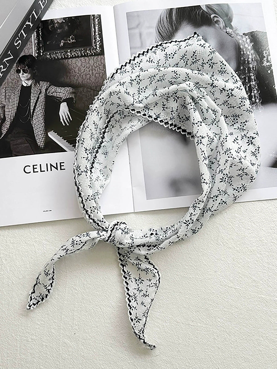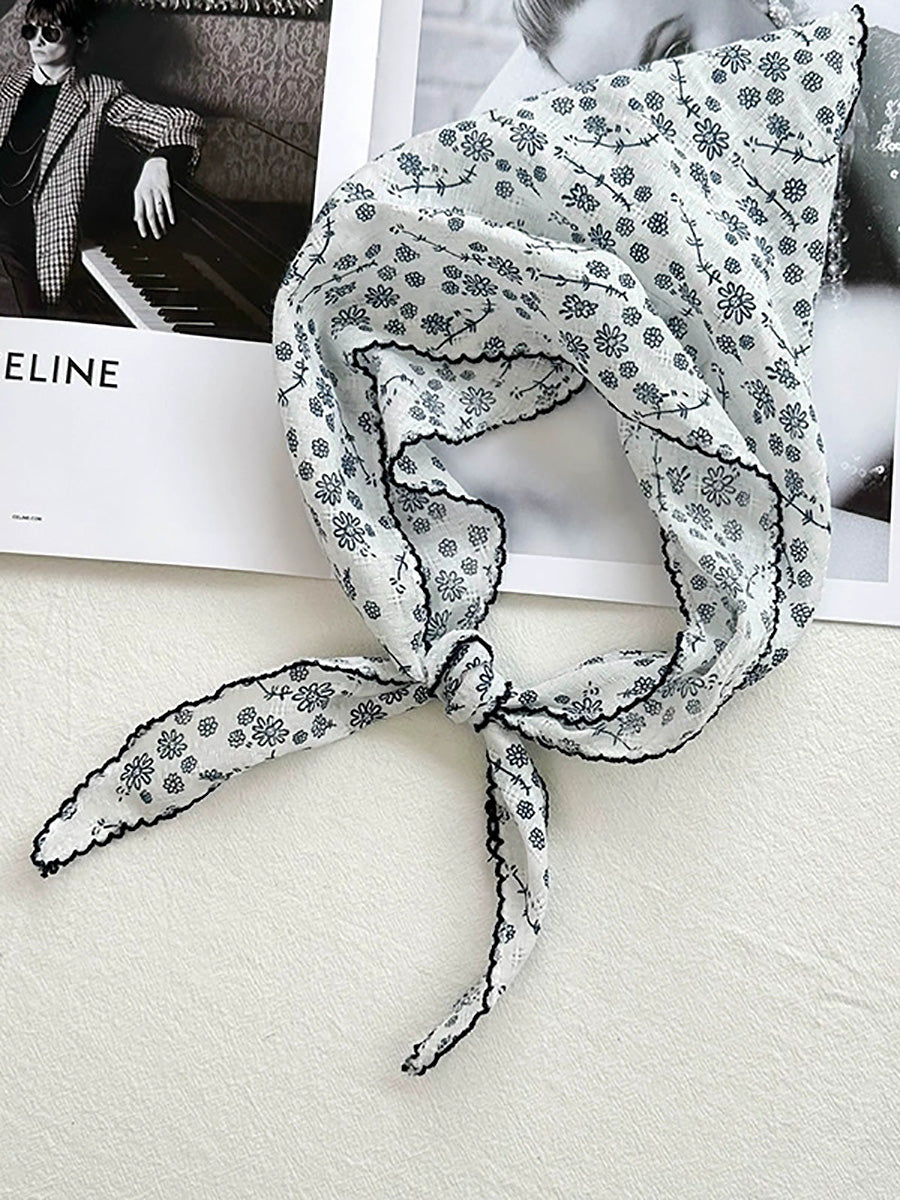 Konstnärlig blommig triangelhalsduk för kvinnor i bomull