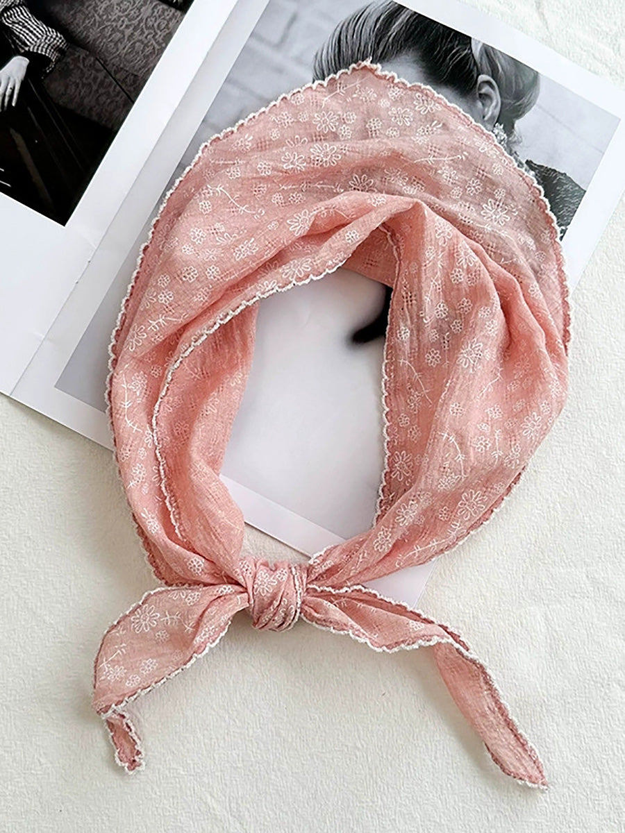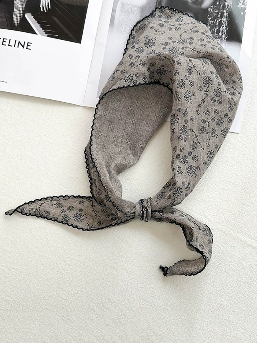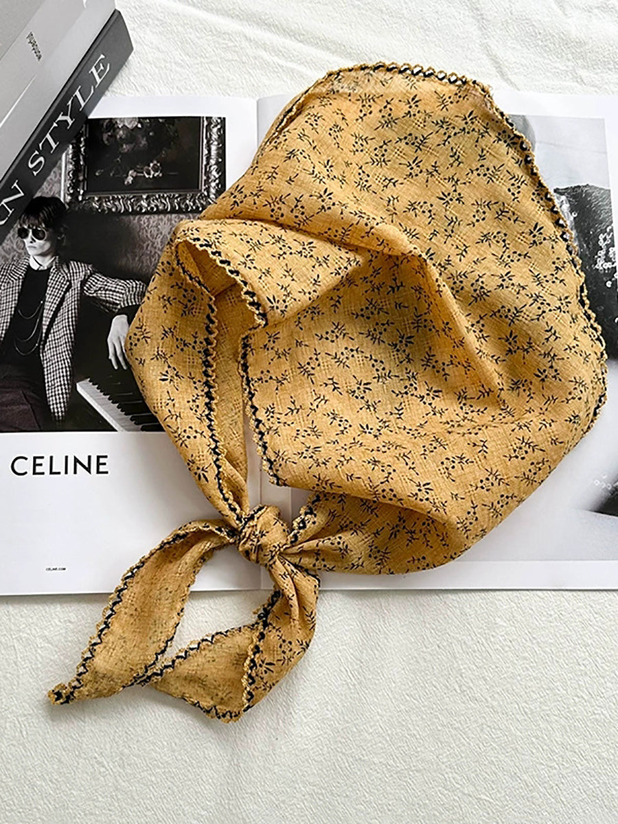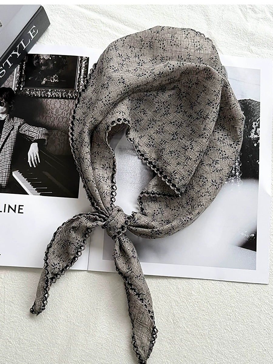 Konstnärlig blommig triangelhalsduk för kvinnor i bomull