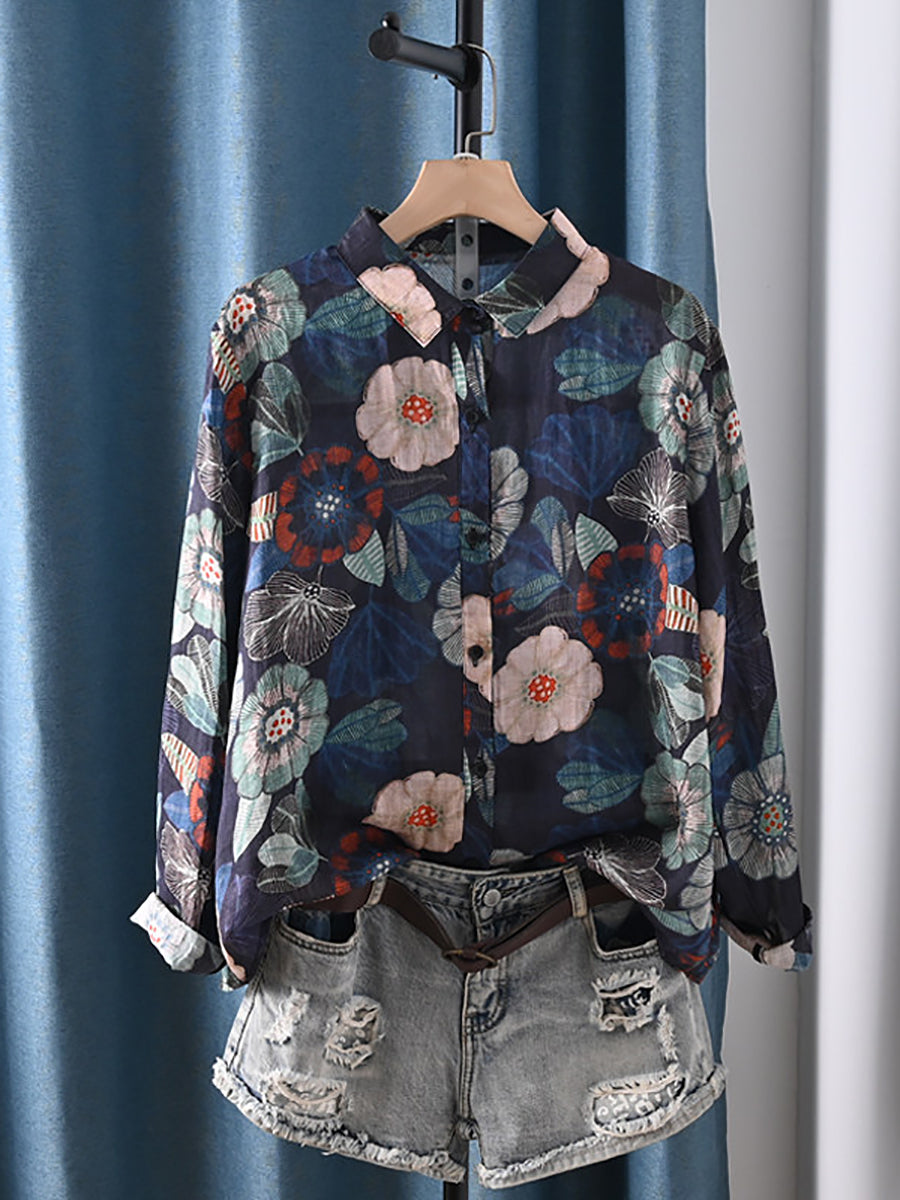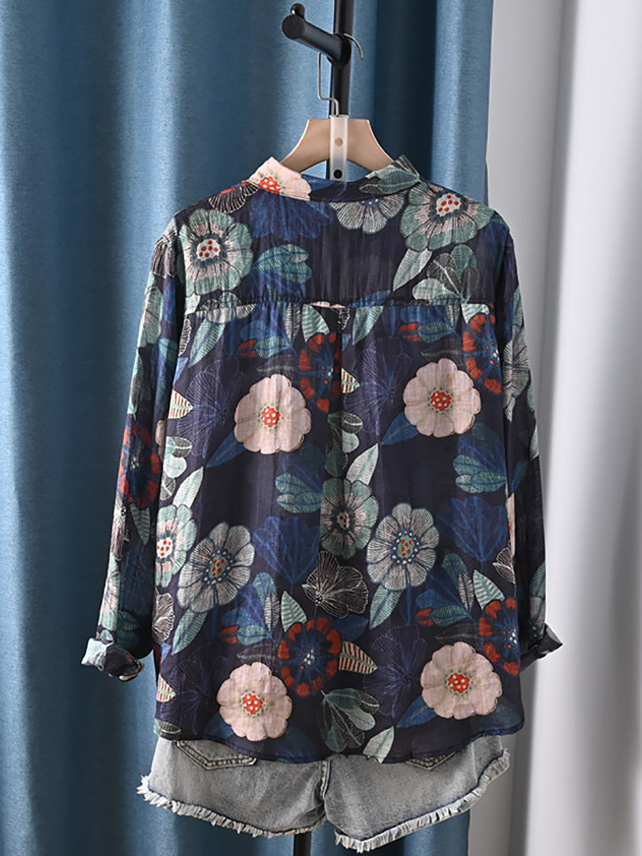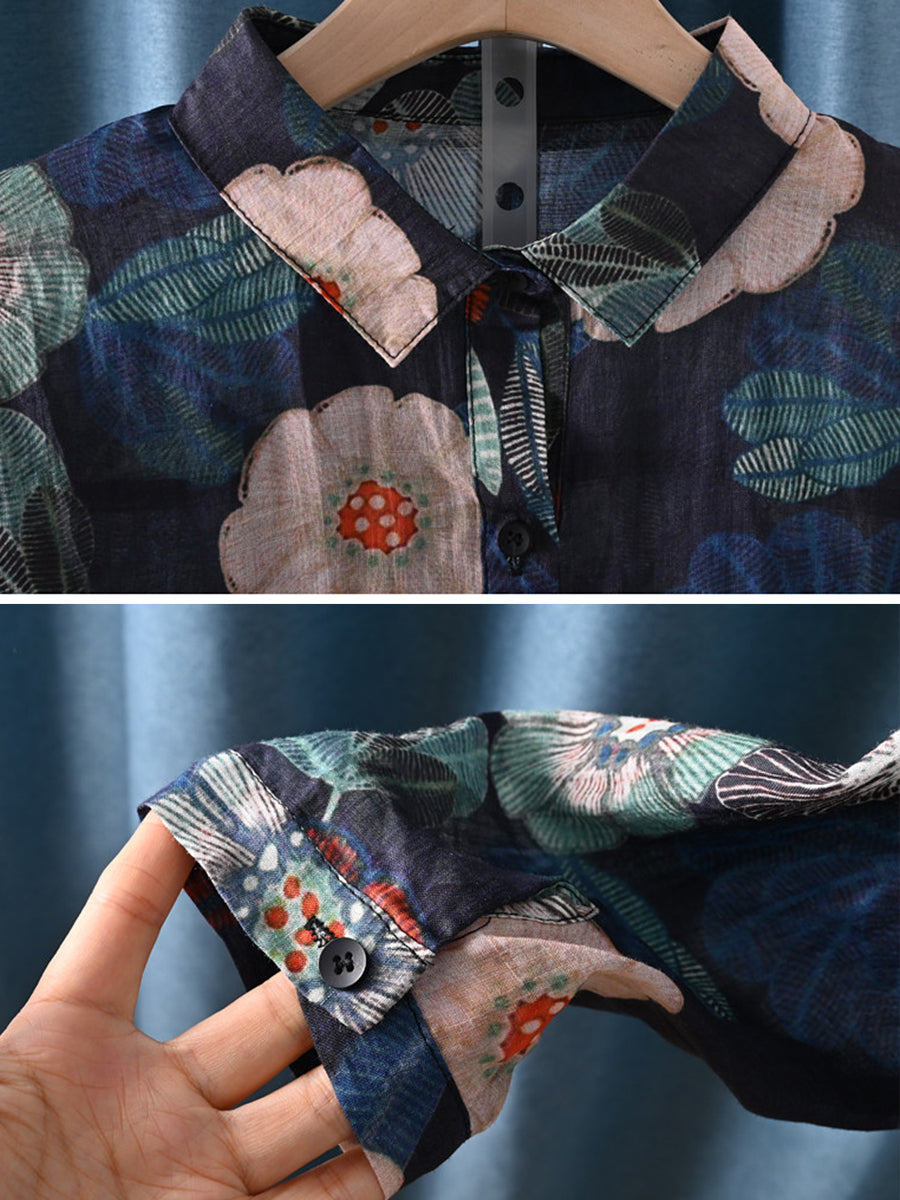 Konstnärlig vårblommig skjorta i 100 % rami för kvinnor
