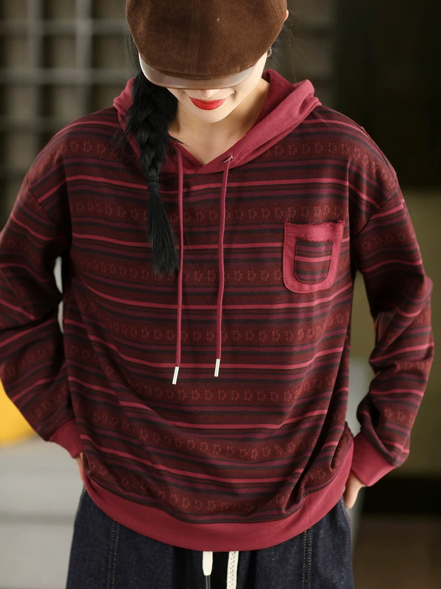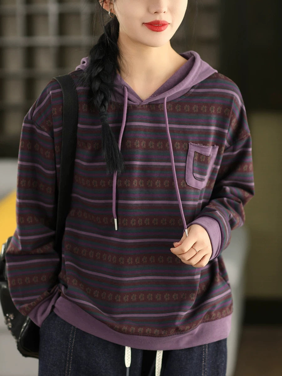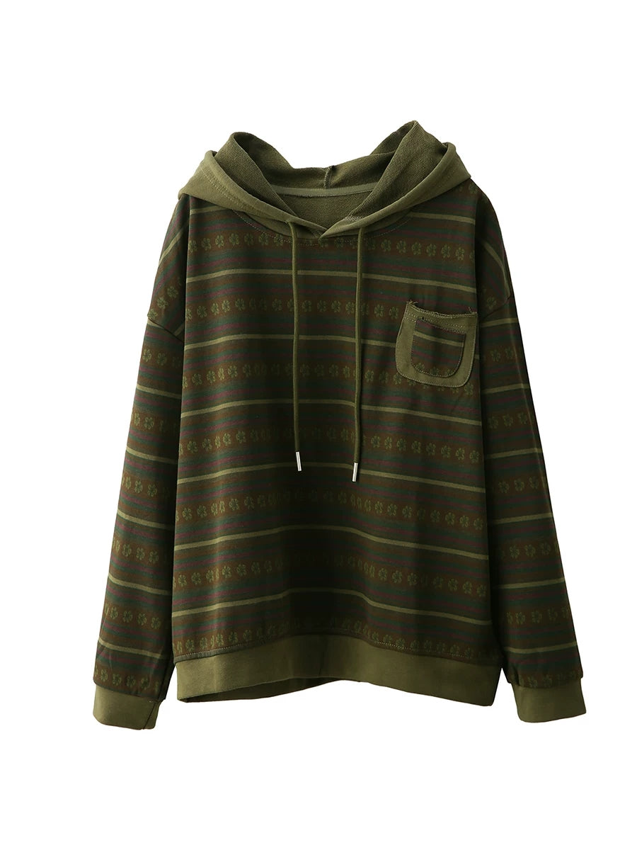 Dam Konstnärlig Randig Huvtröja med Vårmotiv