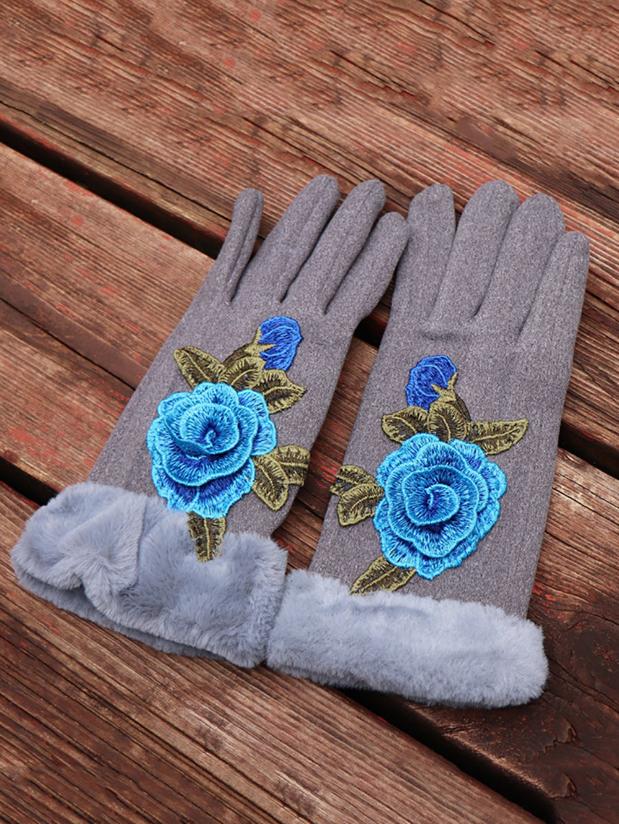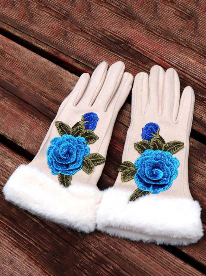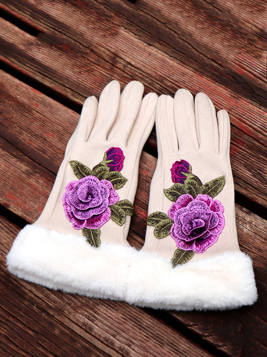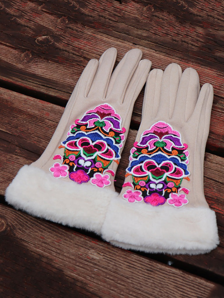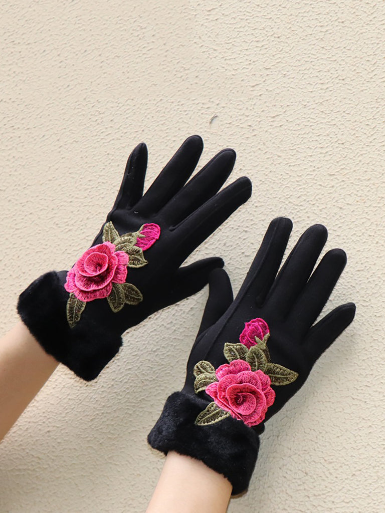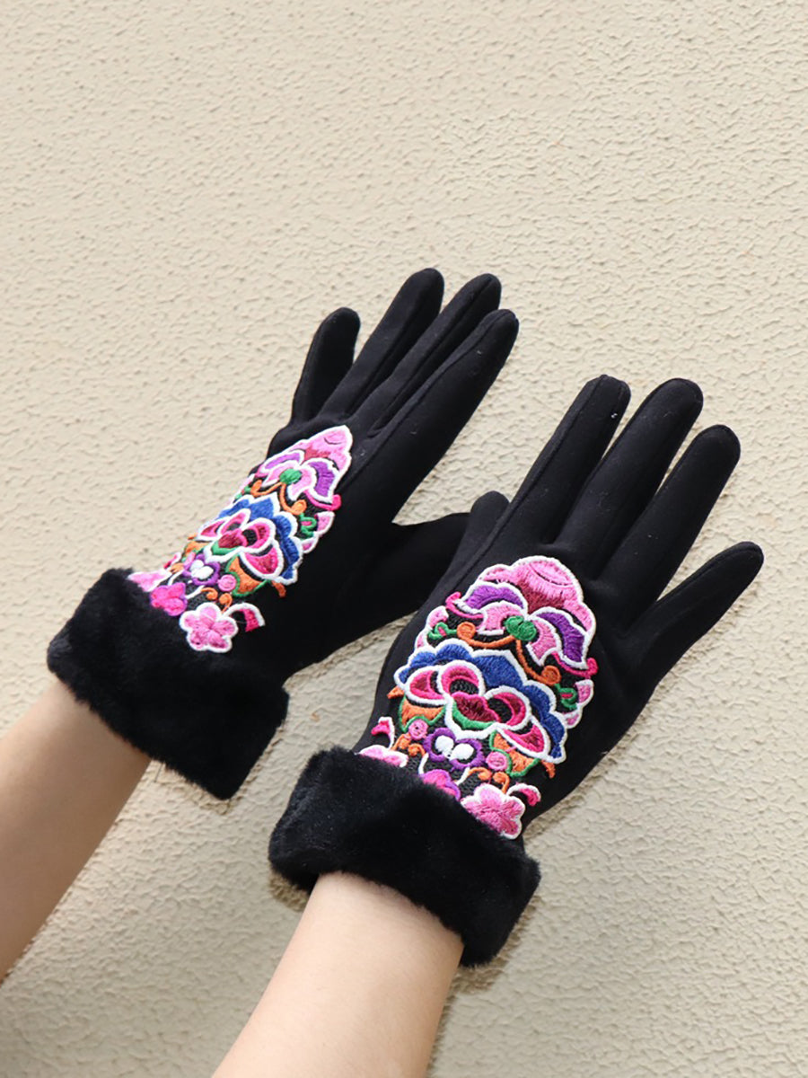 Konstnärliga vinterbroderade fleecefodrade handskar för kvinnor
