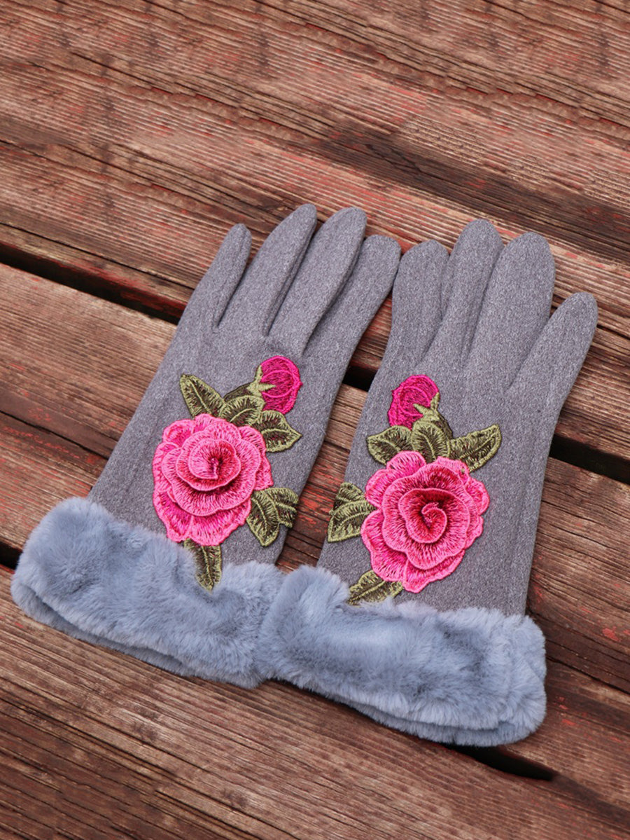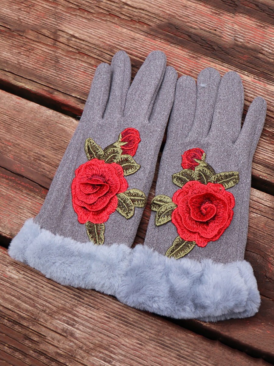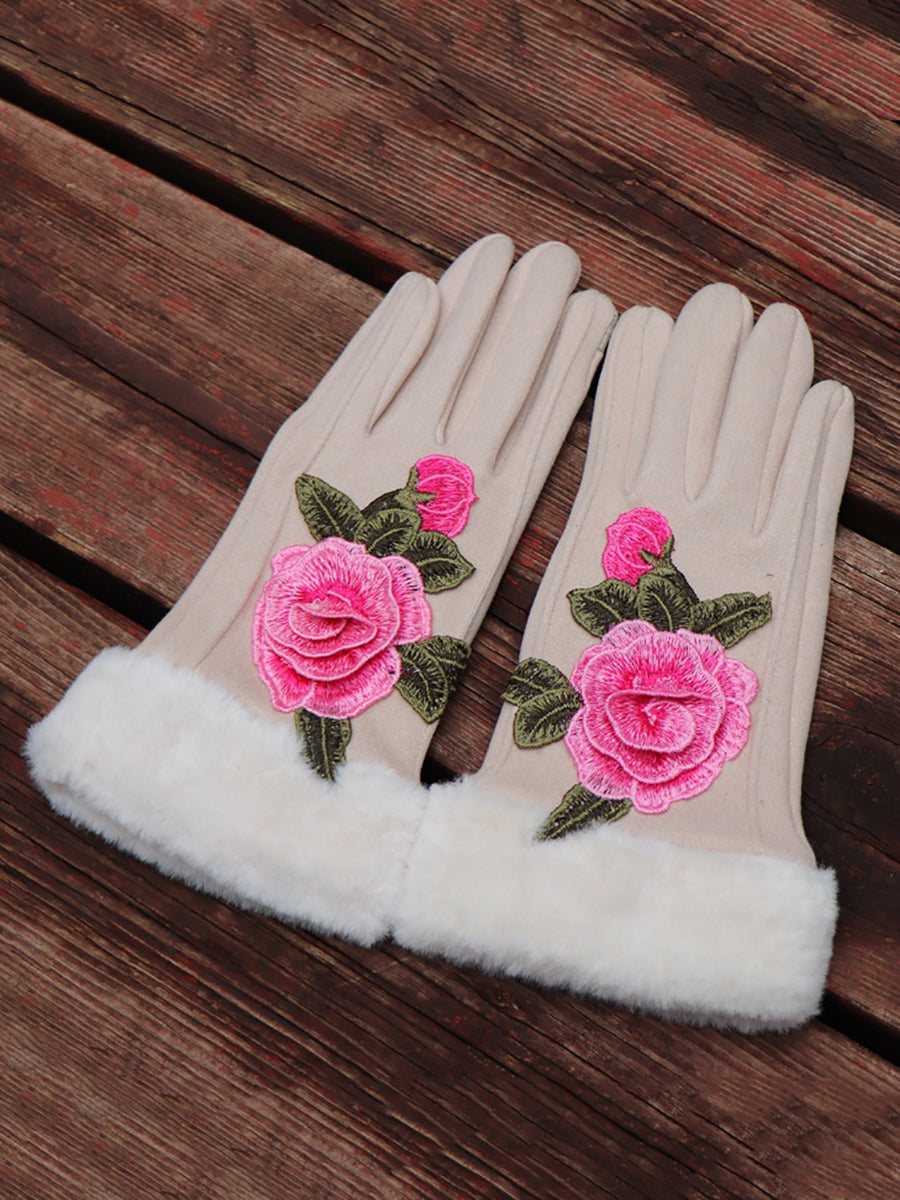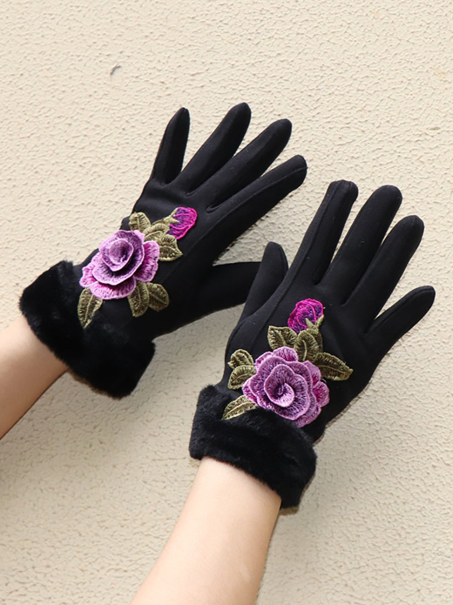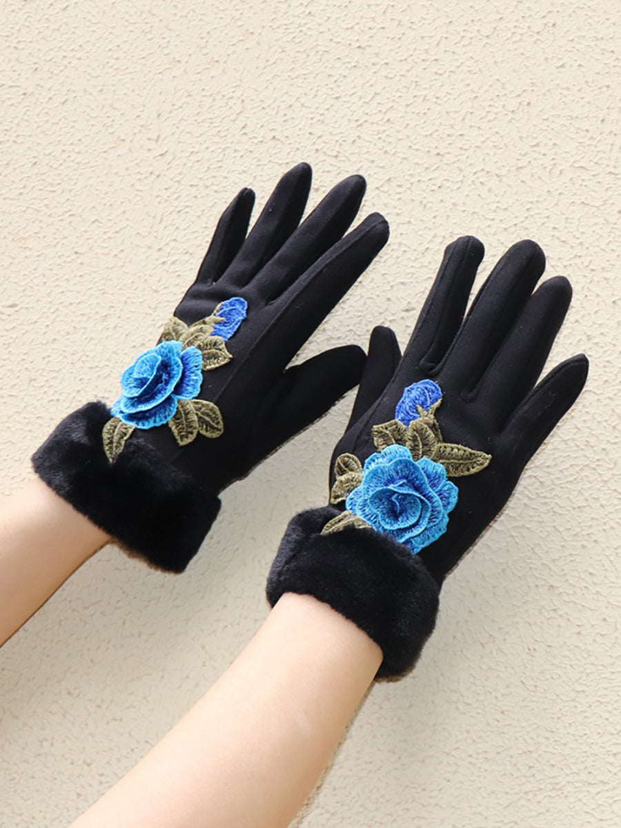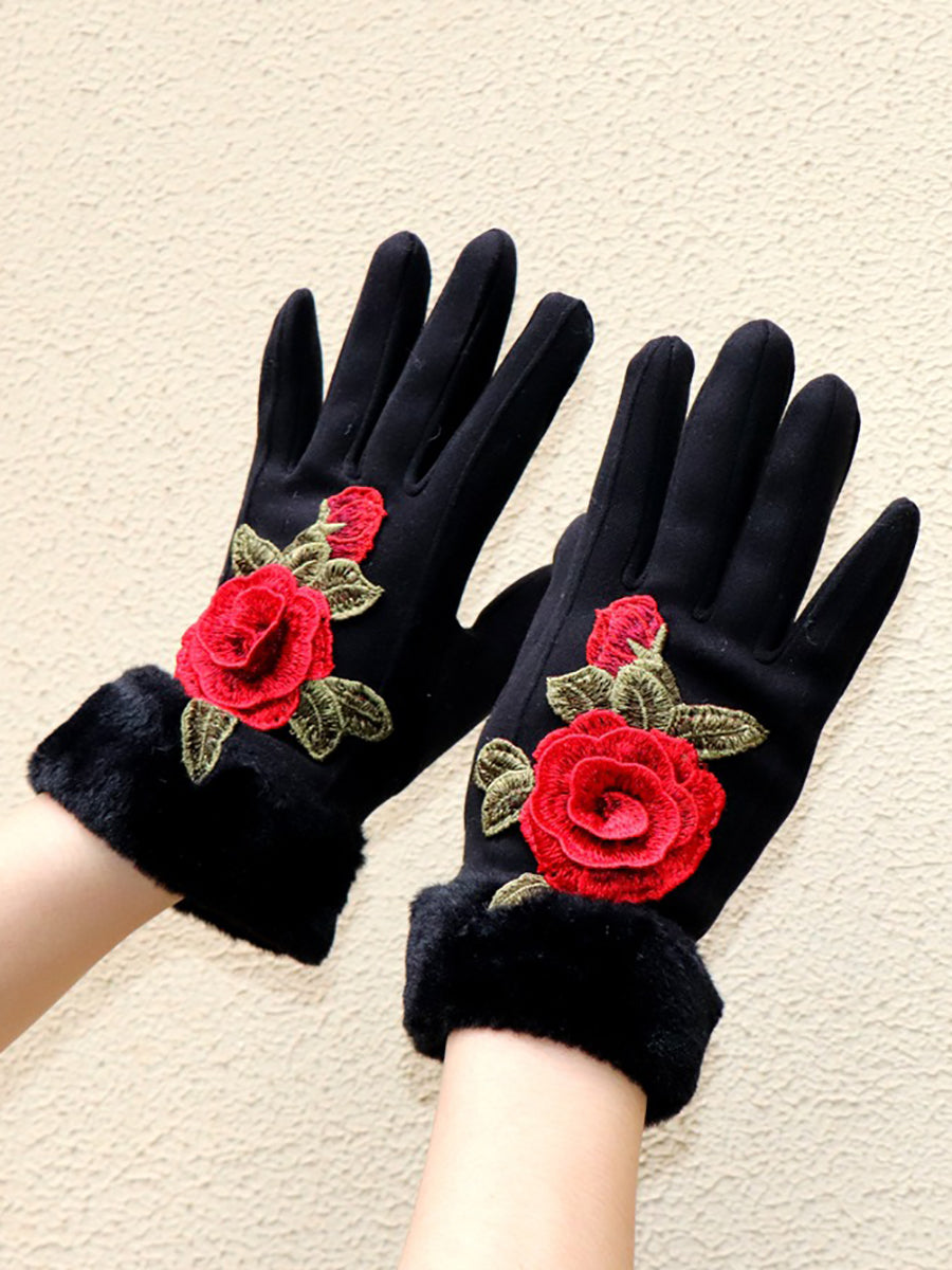 Konstnärliga vinterbroderade fleecefodrade handskar för kvinnor
