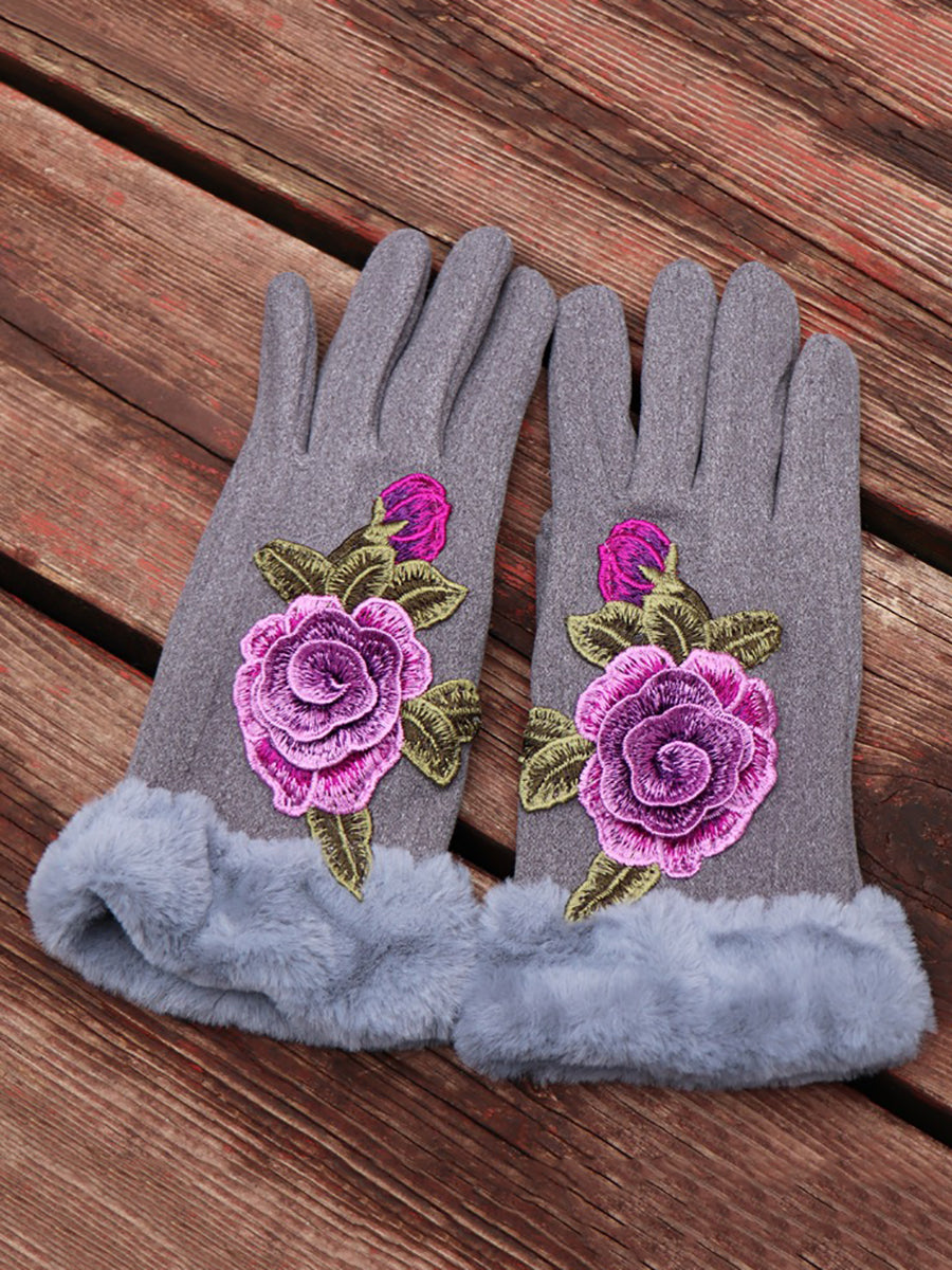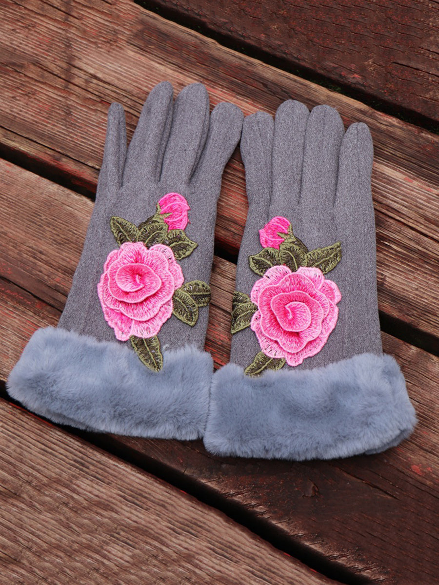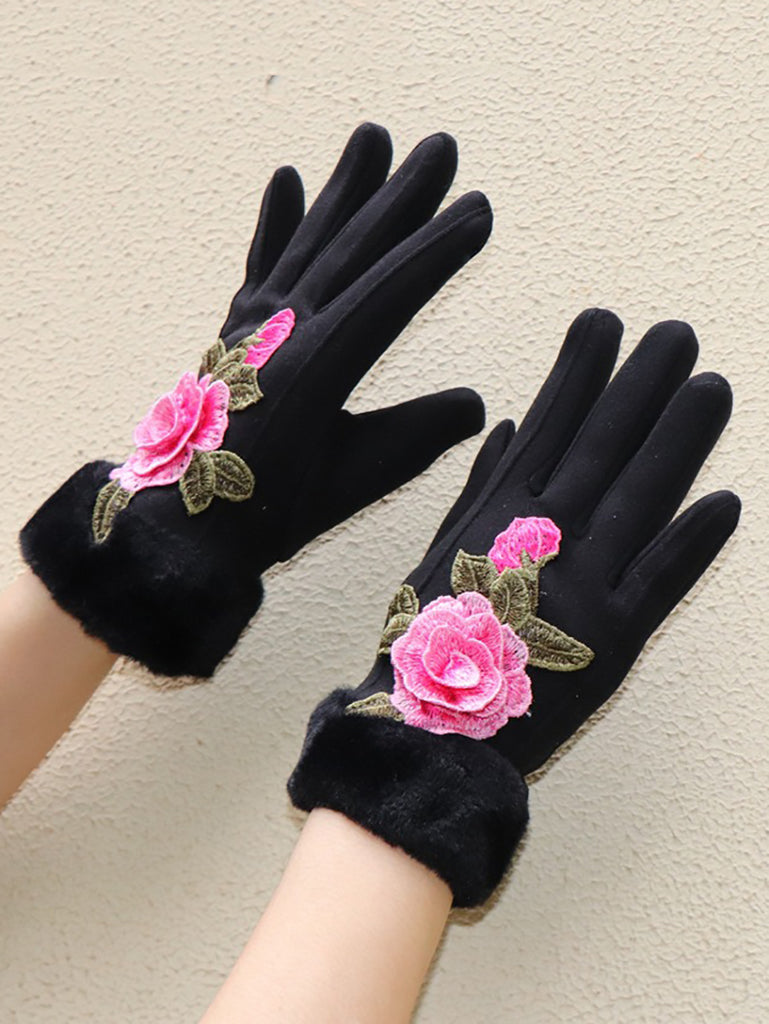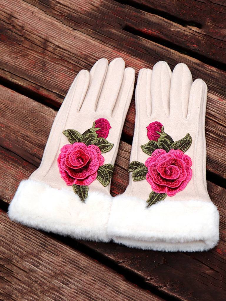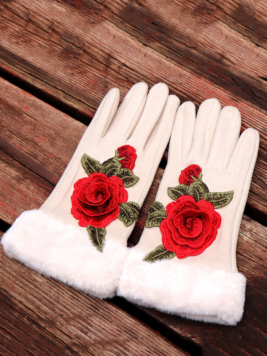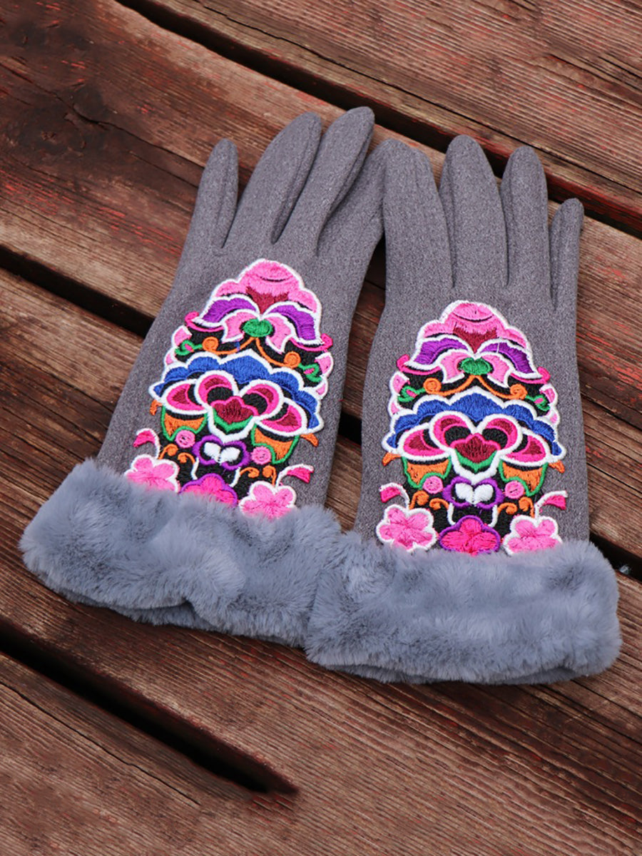 Konstnärliga vinterbroderade fleecefodrade handskar för kvinnor