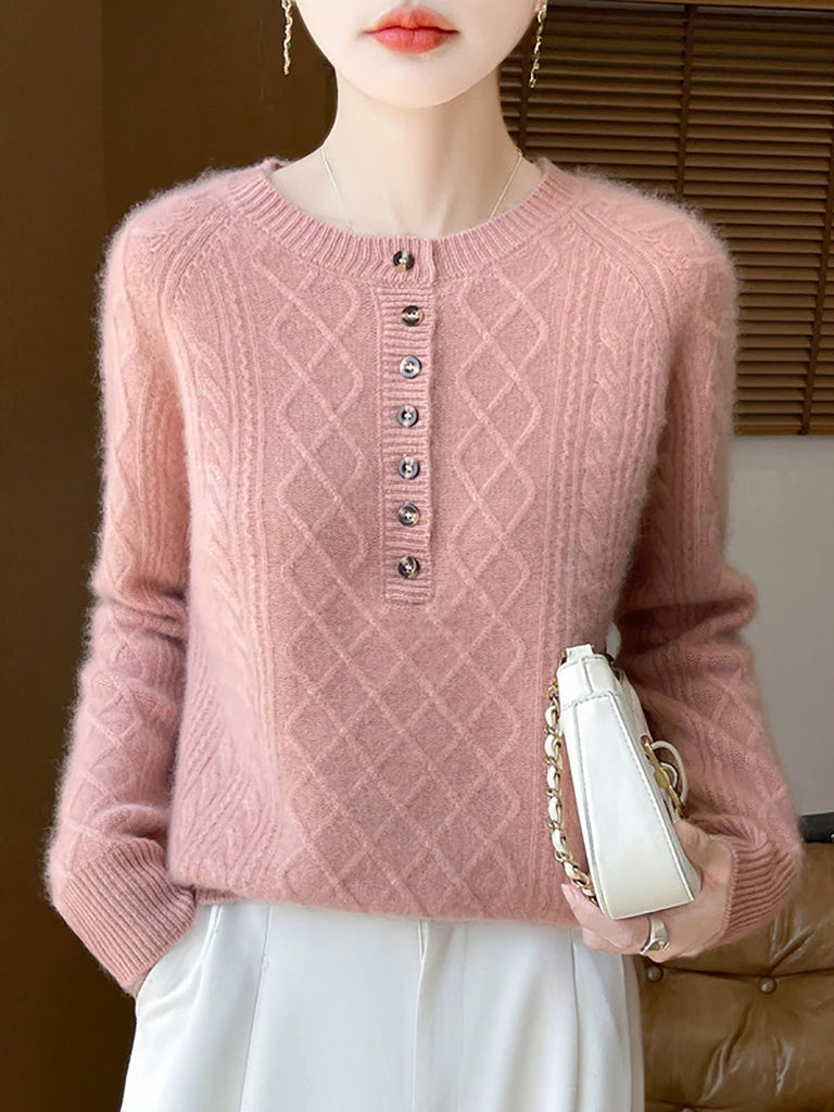 Dam Höst Vintage Rhomboids Ull O-ringad Tröja