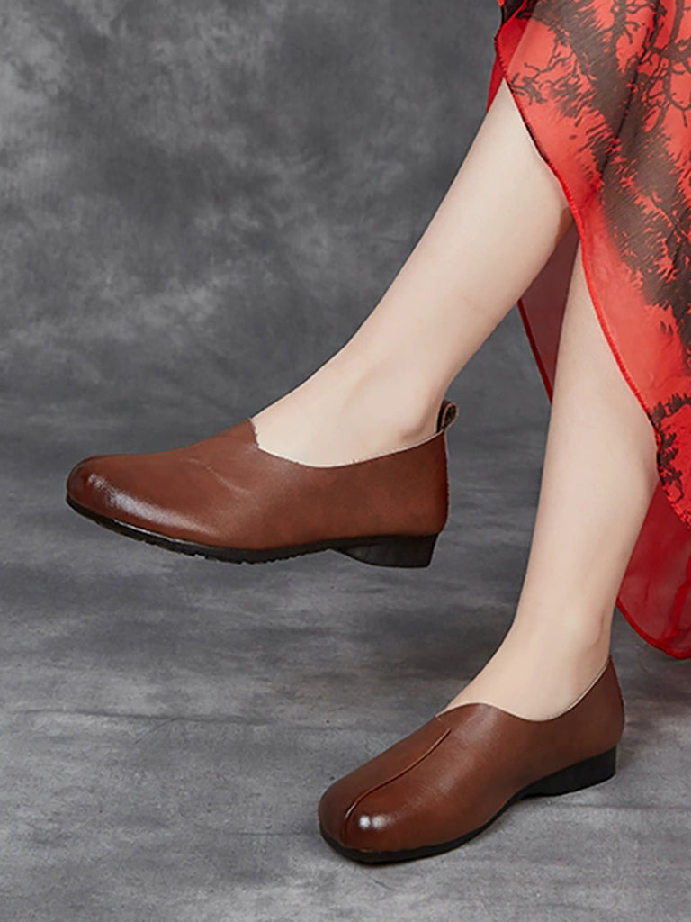 Kvinnors casual mjuka äkta läderskor med låg klack