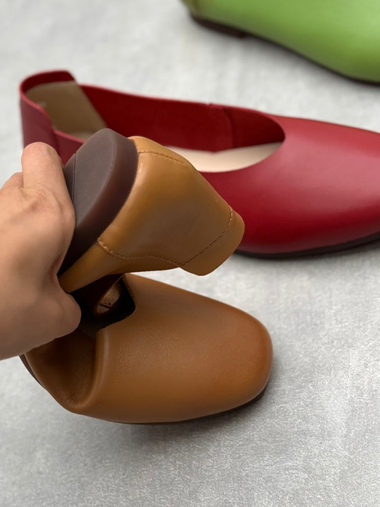 Kvinnor Casual Solid Sommar Läder Platta Skor