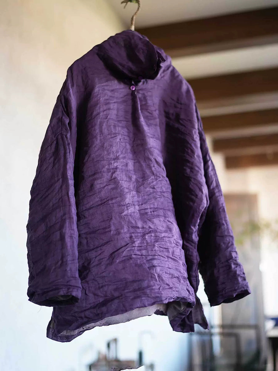 Dam Retro Vårblus i Ren Färg Ramie Polotröja
