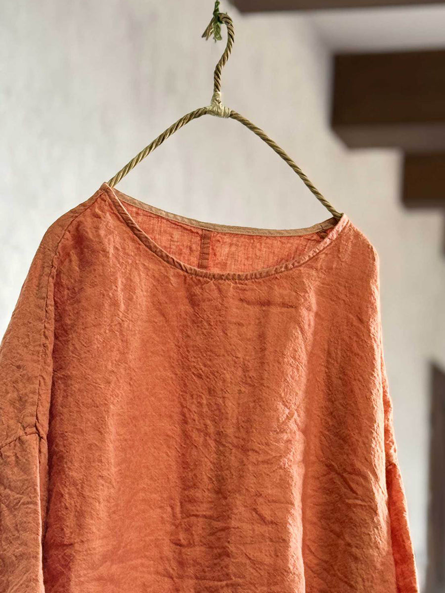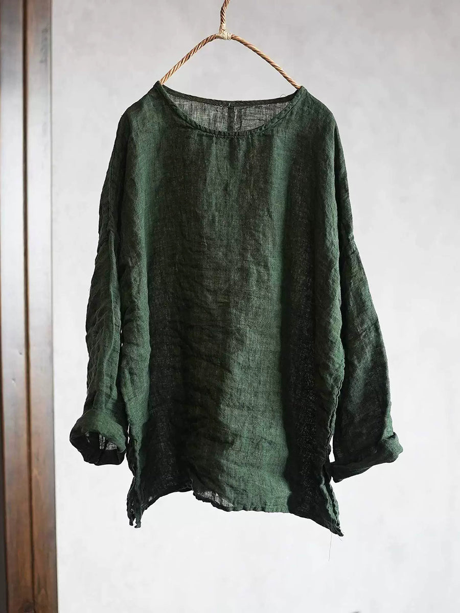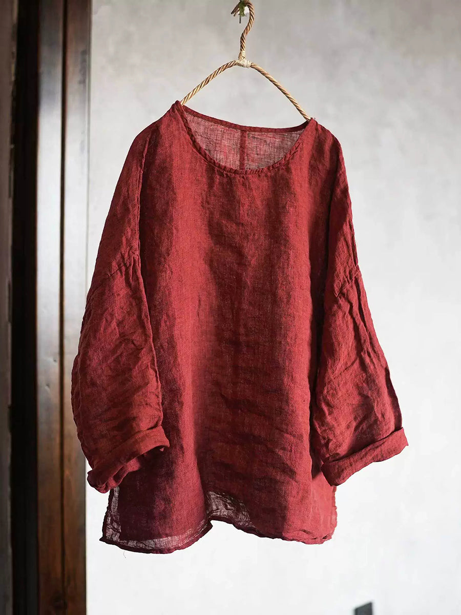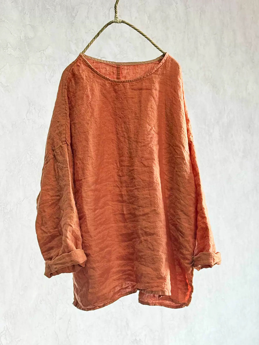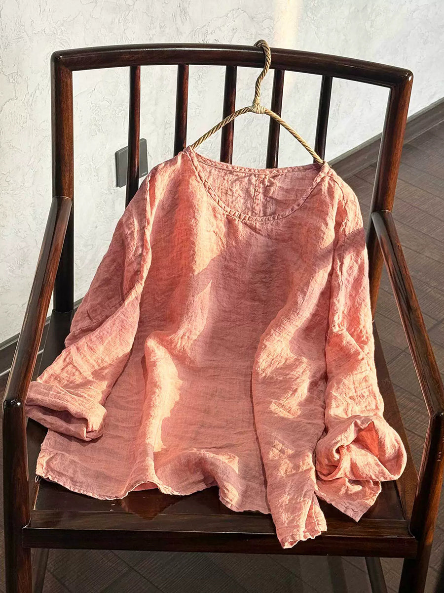 Dam vår retro ren färg O-ringad linneskjorta