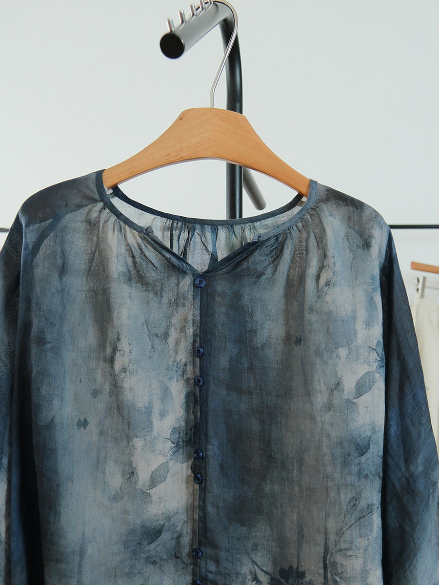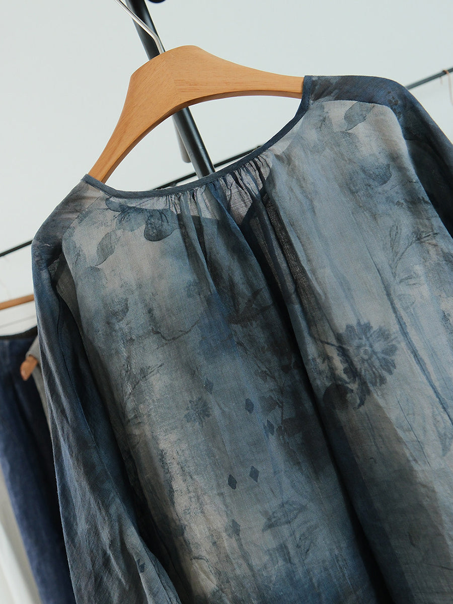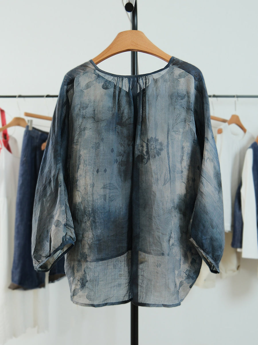 Sommarblus med konstnärlig blommig V-ringning för kvinnor