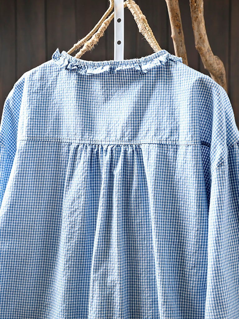 Damskjorta med konstnärlig rutig spetskrage i 100 % bomull