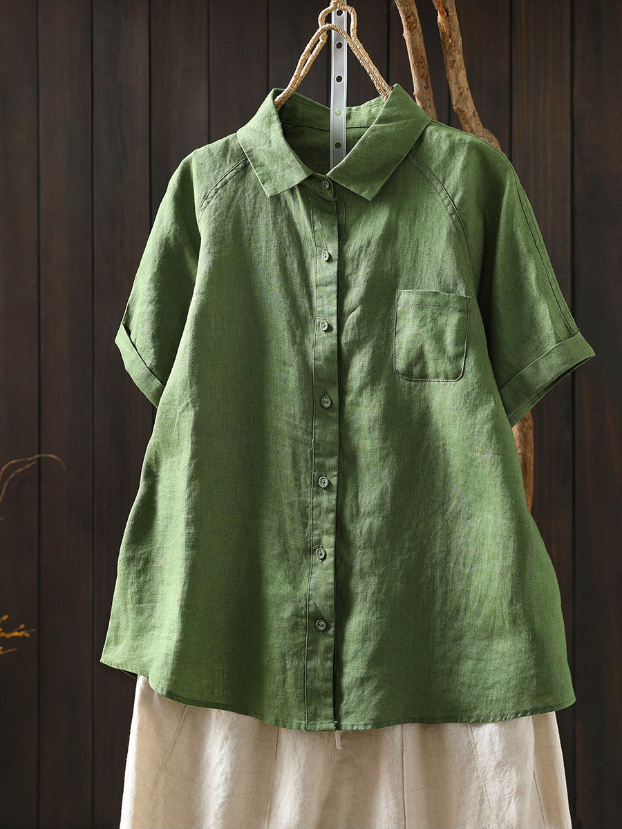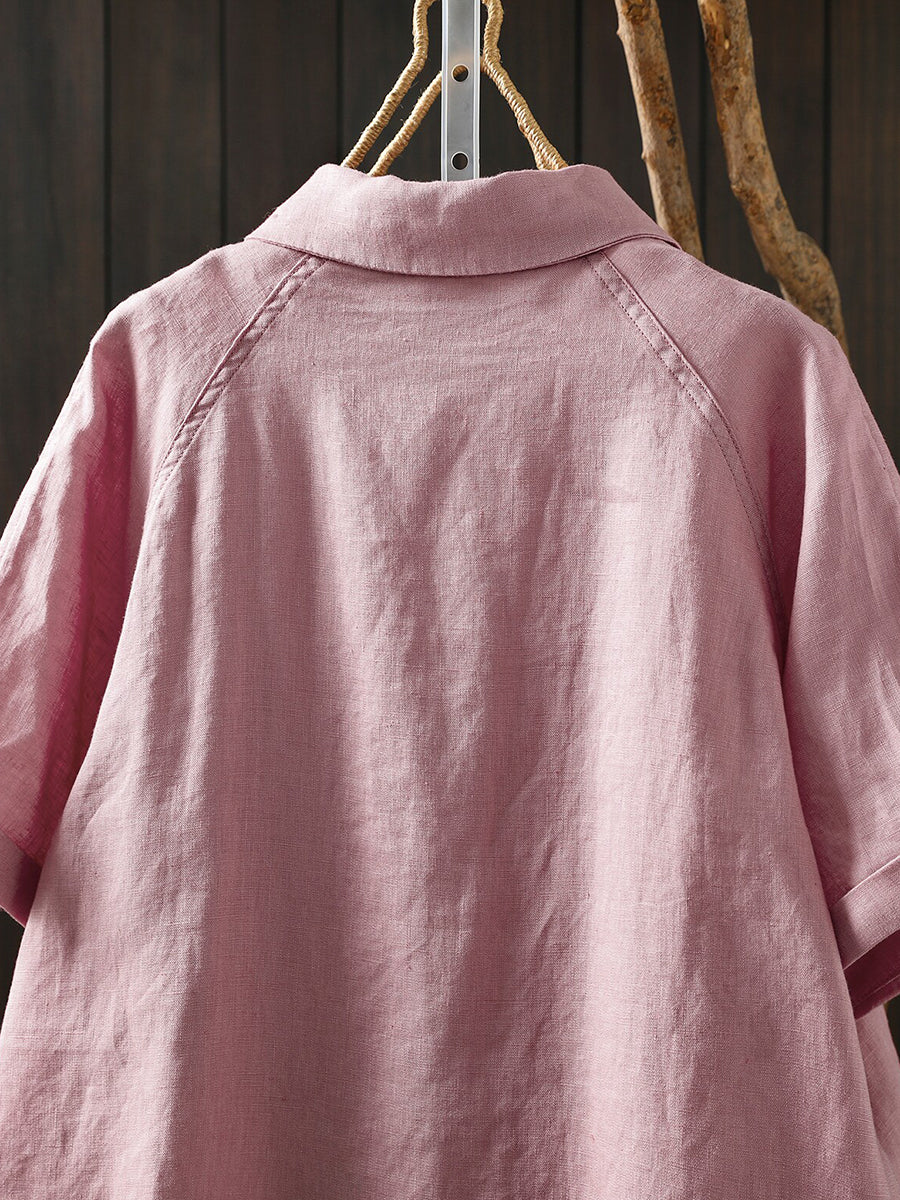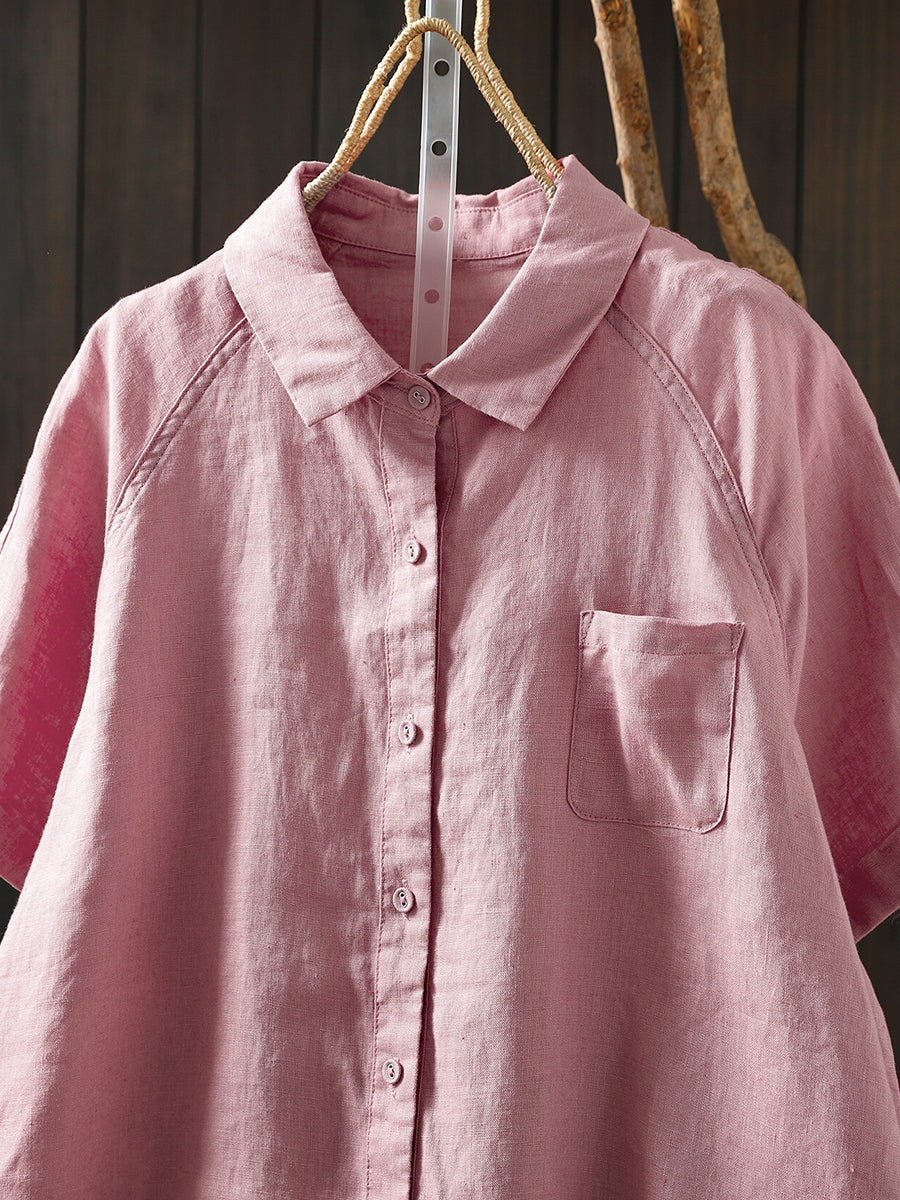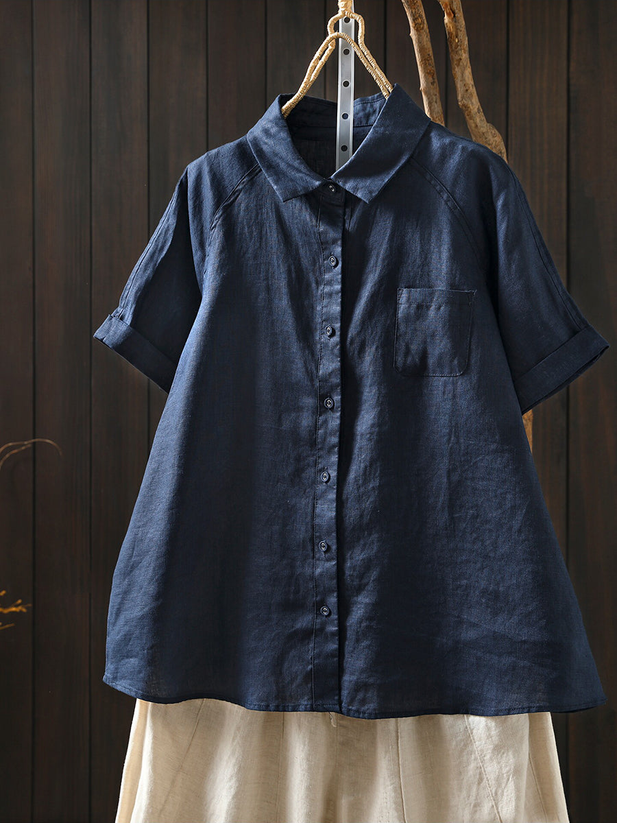 Sommarskjorta för kvinnor, konstnärlig i ren färg, 100 % linne