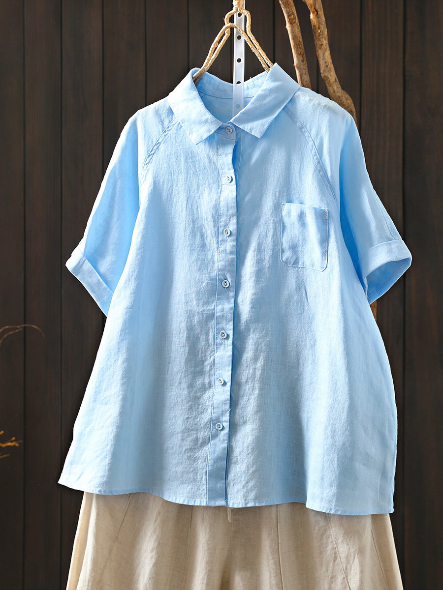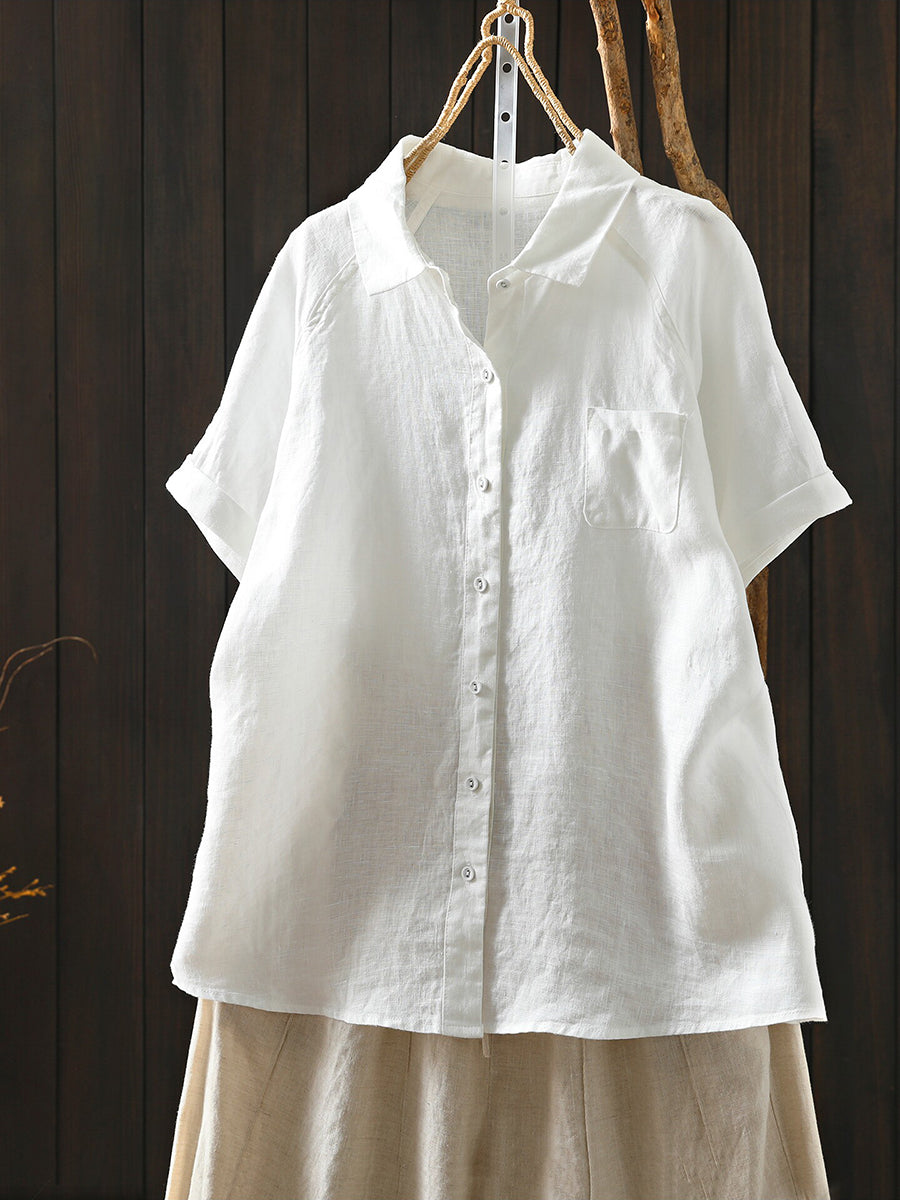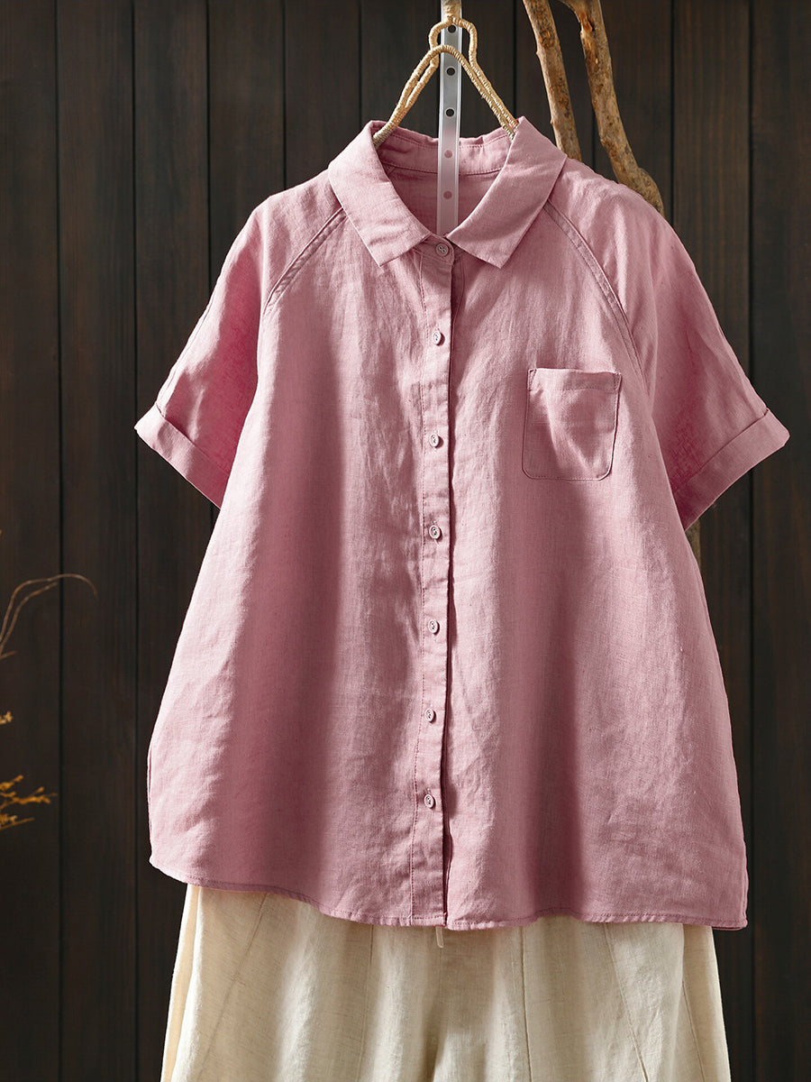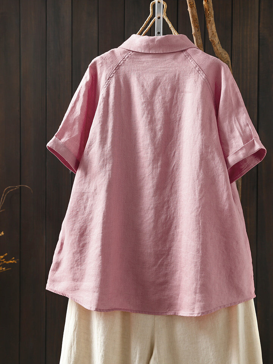 Sommarskjorta för kvinnor, konstnärlig i ren färg, 100 % linne