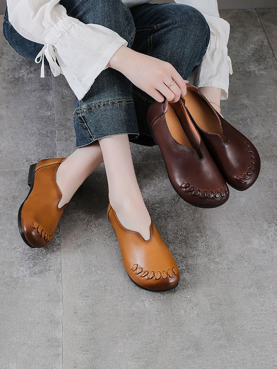 Kvinnors sommar casual platta skor i äkta läder