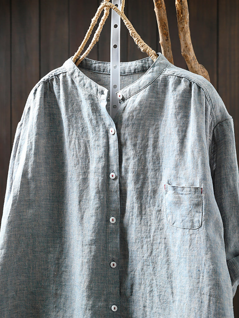 Damer sommar ren färg stativ krage 100% linne skjorta