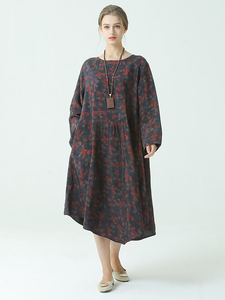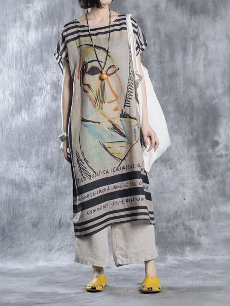 Plus Size Dam Sommar Vintage Print Tunn Ramie Jacka