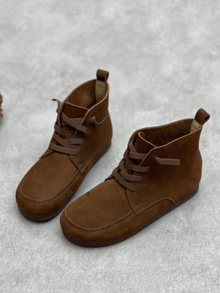 Kvinnor Vintage dragsko i mjukt läder massiva ankelstövlar