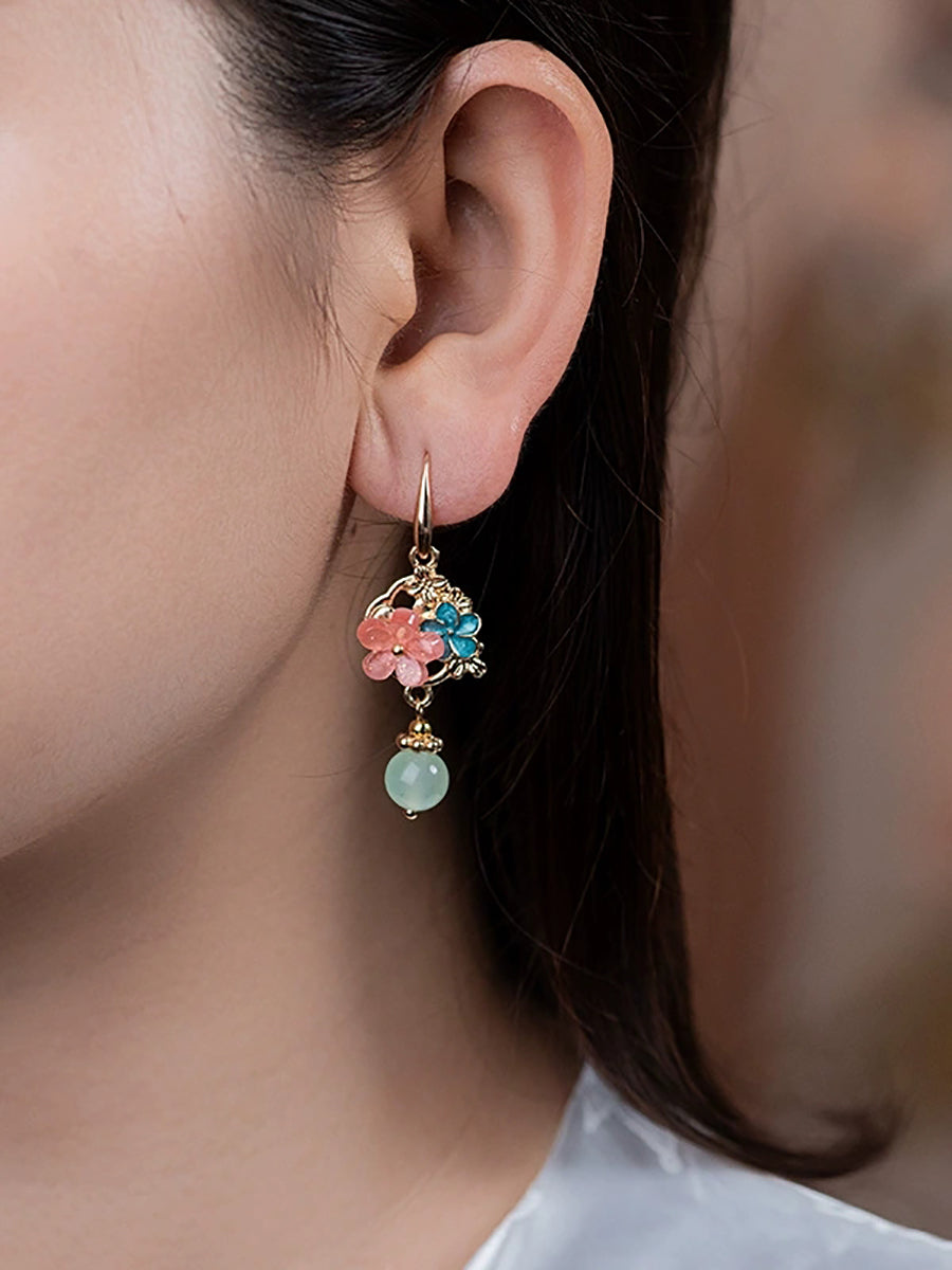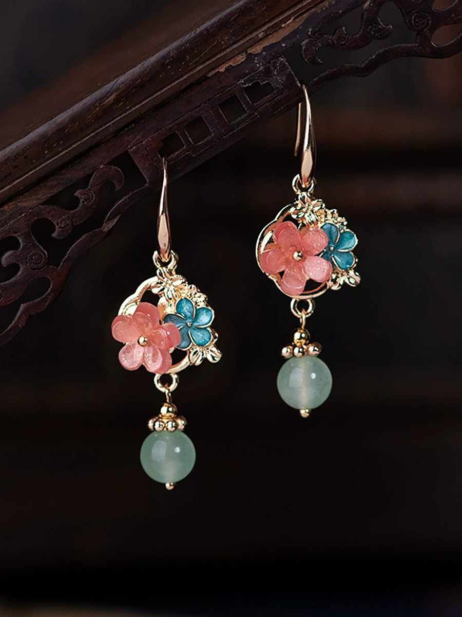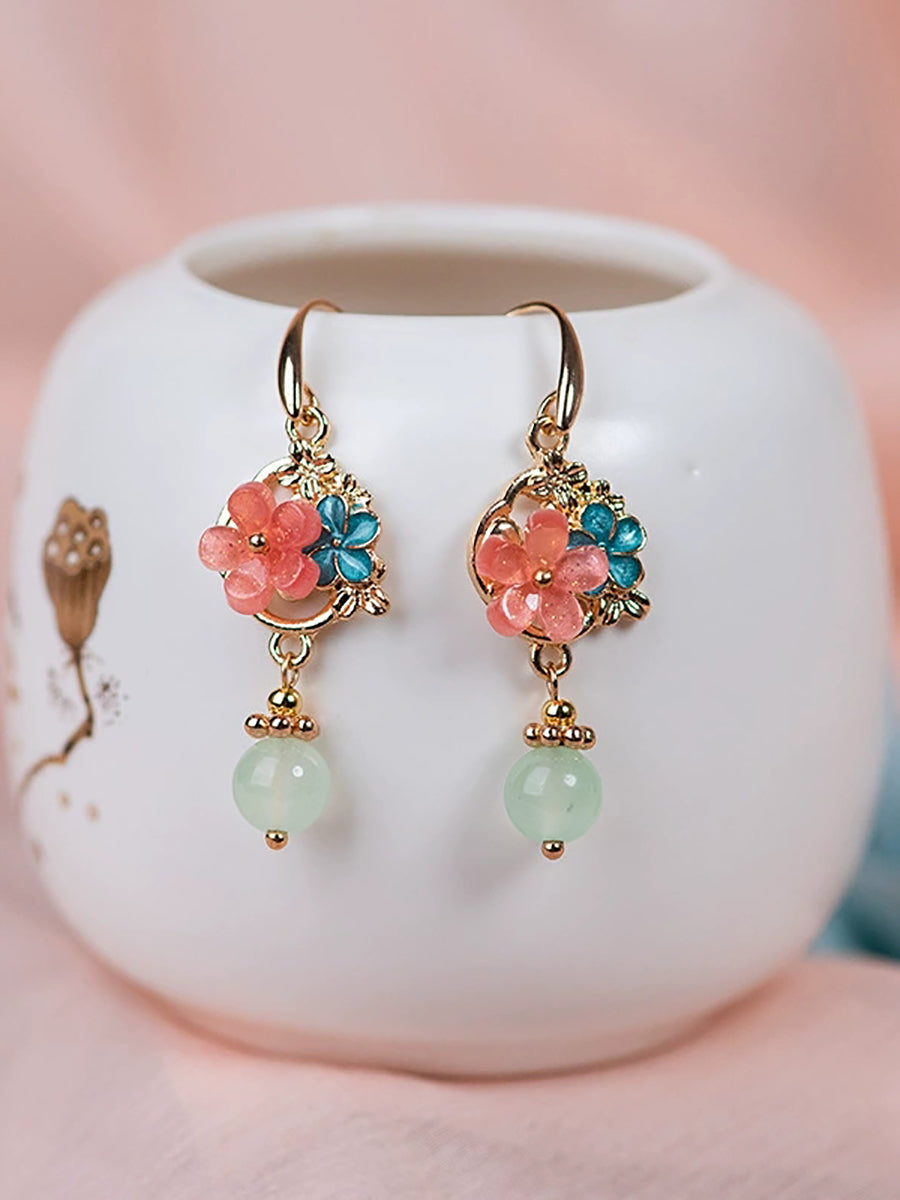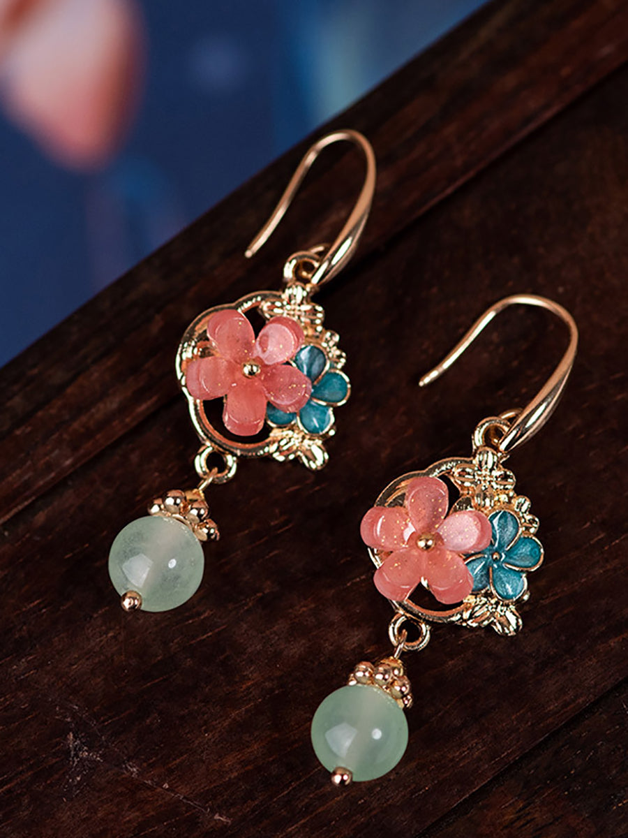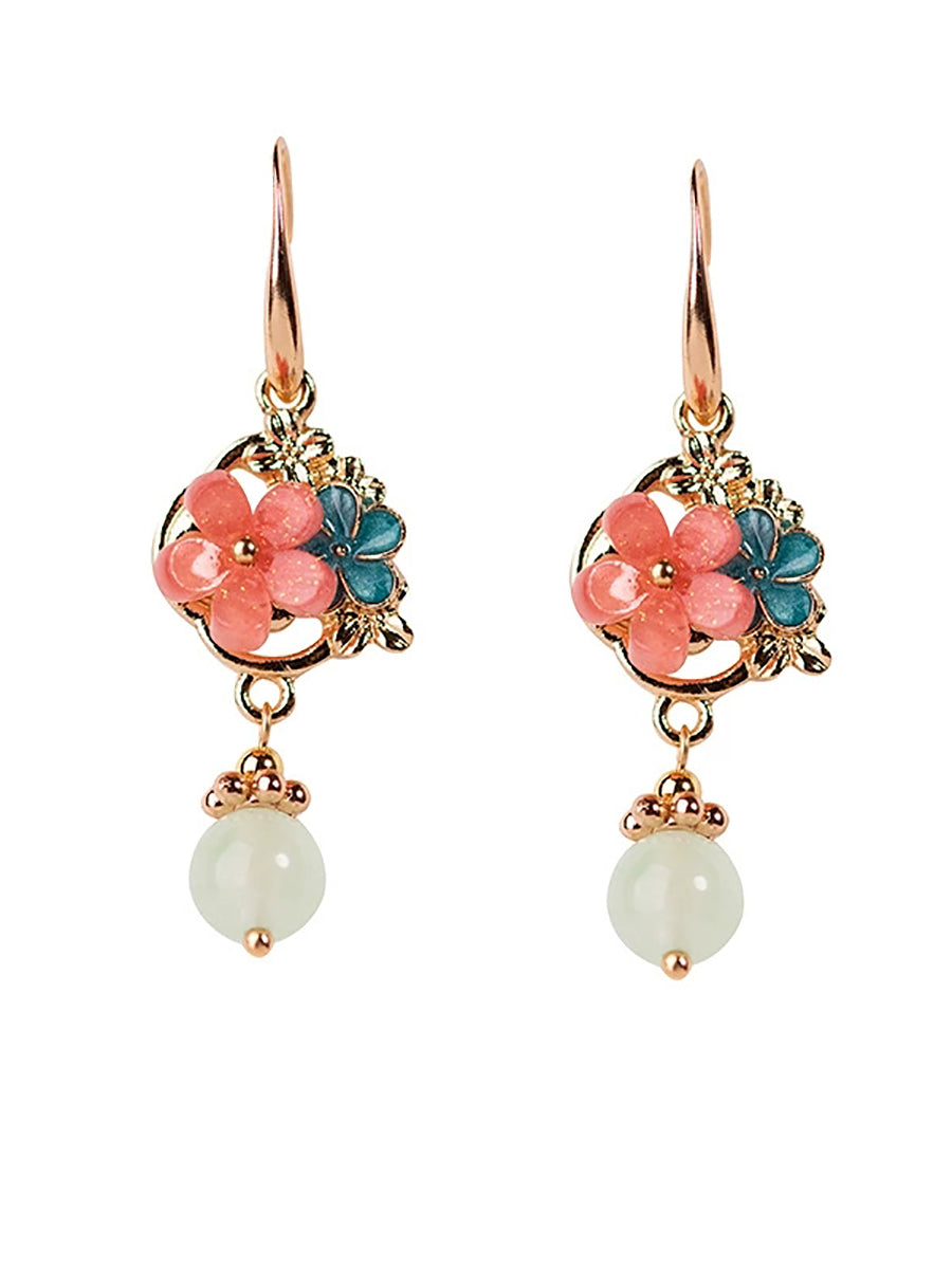 Örhängen med ättiksyrade blommor och jademotiv för kvinnor